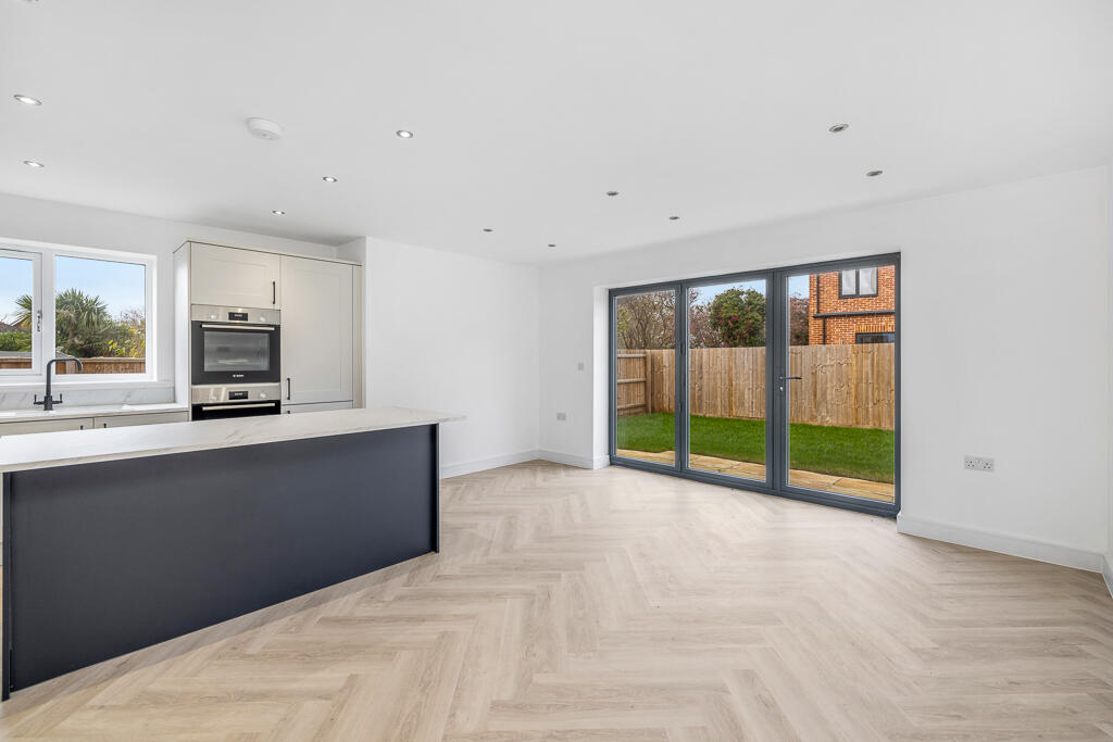 Open plan kitchen diner with bi fold doors to garden aspect. Fully fitted kitchen with a selection of units and integrated appliances including, fridge freezer, dishwasher, oven, hob and extractor over. Spot lighting.
