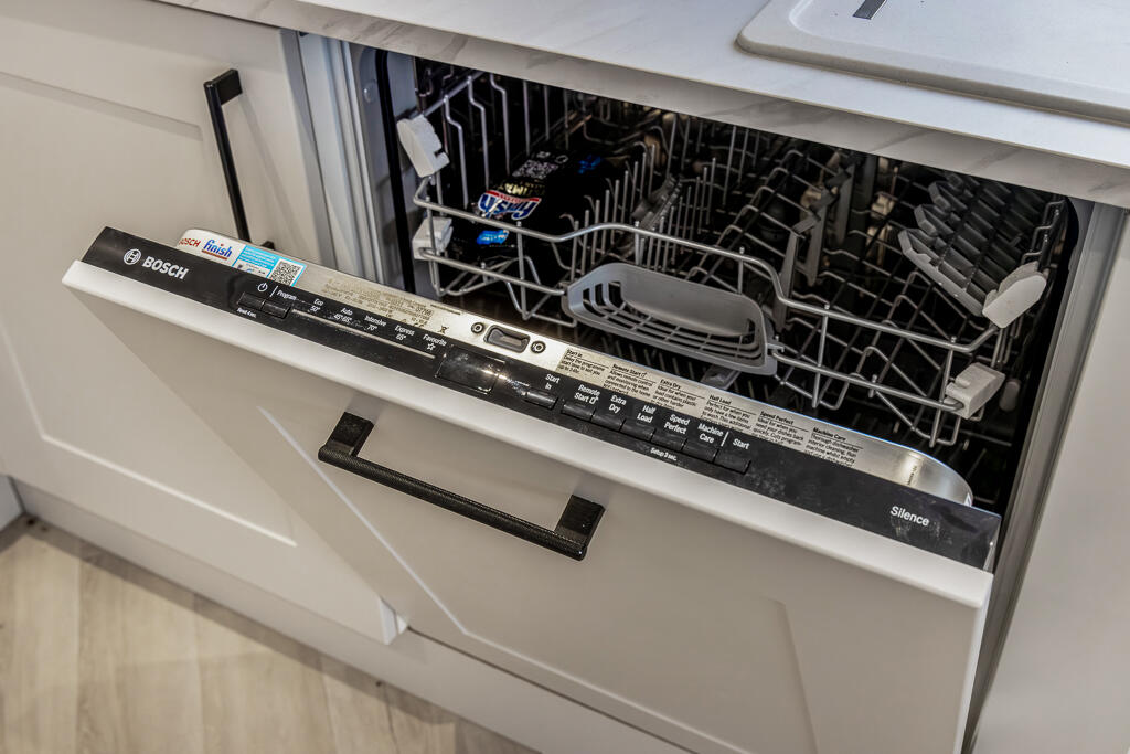 The modern and stylish interior benefits from the open-plan kitchen dining area with bi-fold doors opening on to the enclosed garden which is perfect for entertaining guests. The fully-equipped kitchen features integrated appliances, sleek countertops and a selection of cupboards whilst the utility room offers ample storage space for all your cooking essentials. Upstairs the master bedroom features an en-suite bathroom, while the other two bedrooms share a modern family bathroom.