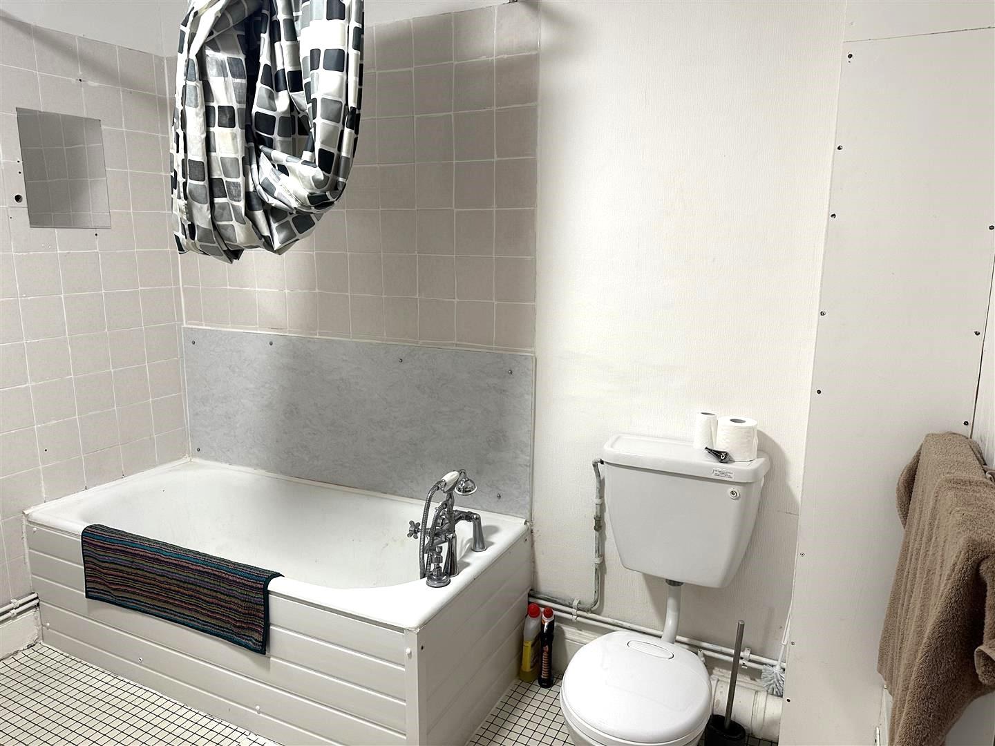 Lino flooring, painted walls with tiles around wet areas. WC, hand wash basin and walk in shower. Washing machine.