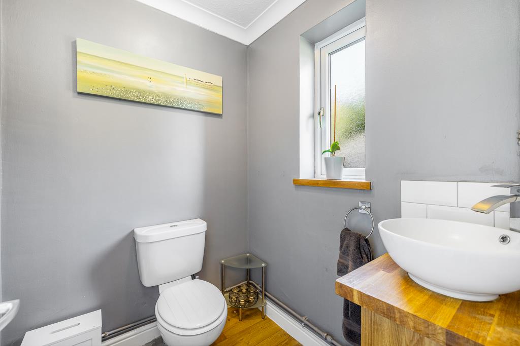 UPVC window to rear. Toilet. Wash hand basin. Tiled splash back. Wood effect flooring. Radiator.