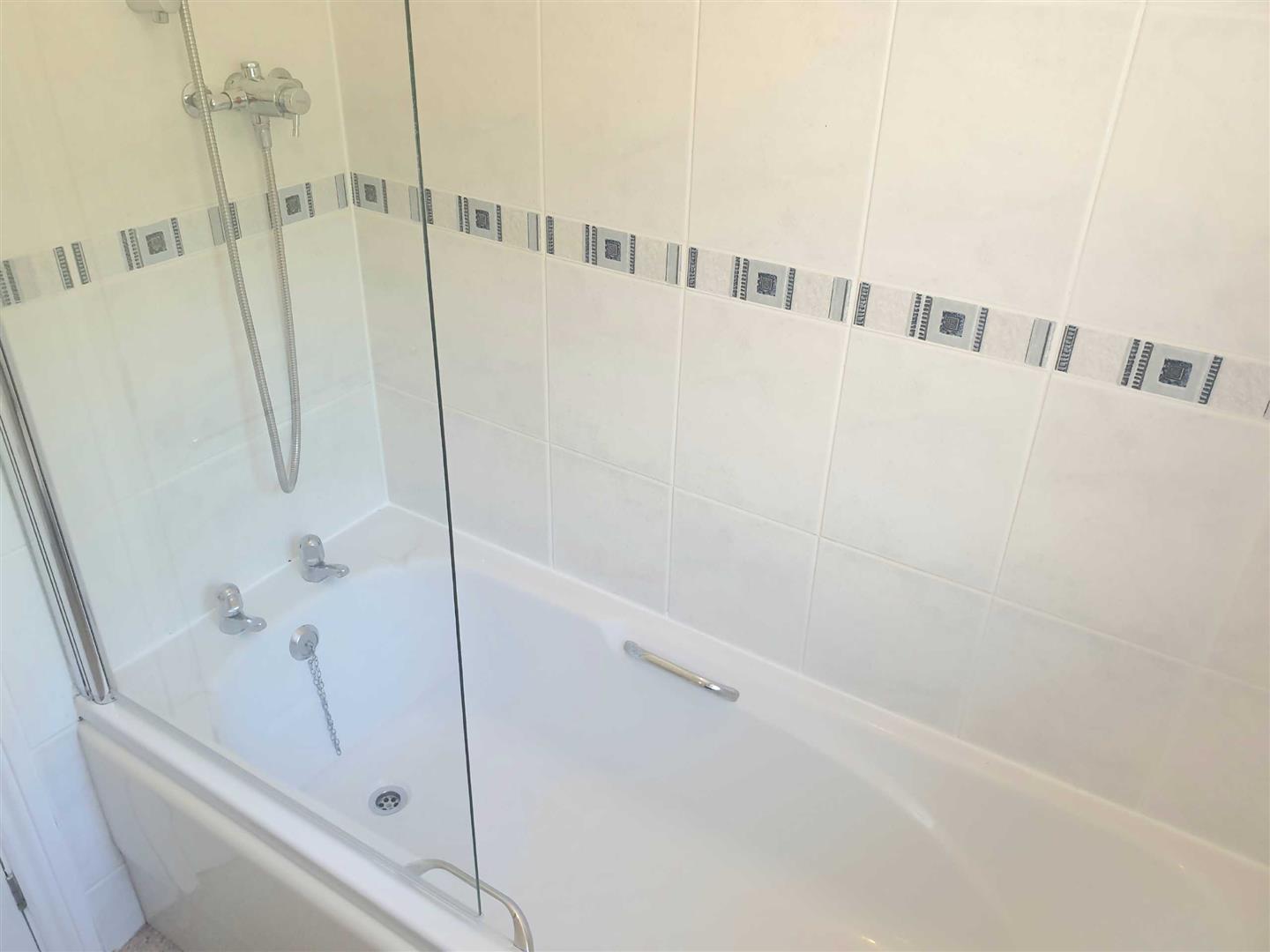 Lino flooring with skirting. Fully tiled walls. WC unit with hand wash basin. Bath with mains shower overhead and shower screen. Upvc window to the rear aspect. Medicine cabinet with wall lighting.