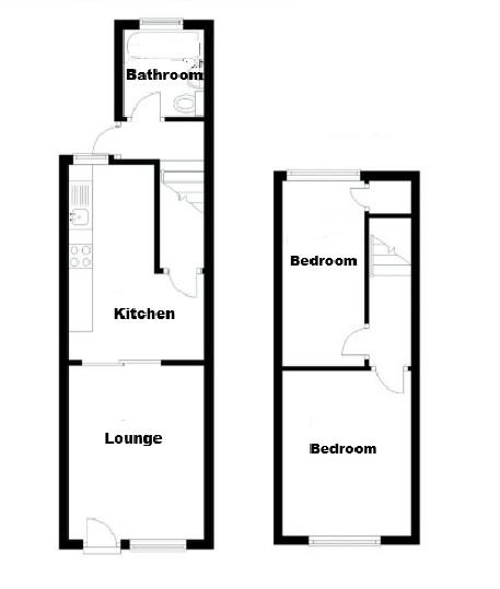 PVC double glazed window to rear. Matching base and eye level units with work surface over. Space for freestanding cooker. Space for a fridge/freezer. Space and plumbing for washing machine. Understairs storage cupboard. Vinyl flooring.
