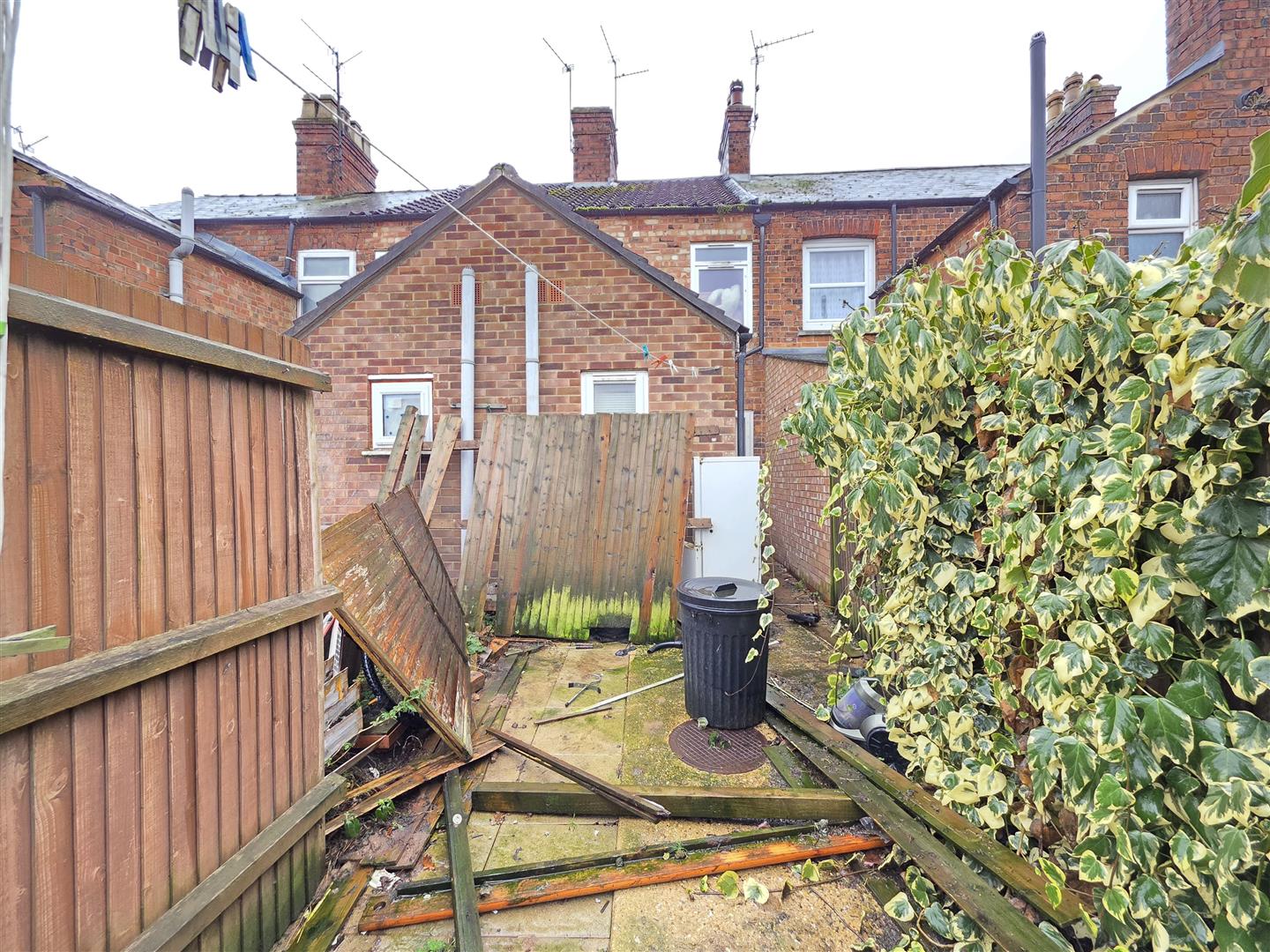 The rear garden is enclosed be timber fencing. Laid to concrete. Timber shed. Rear access gate.