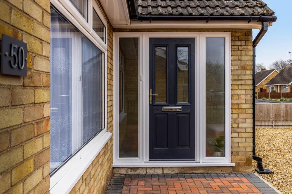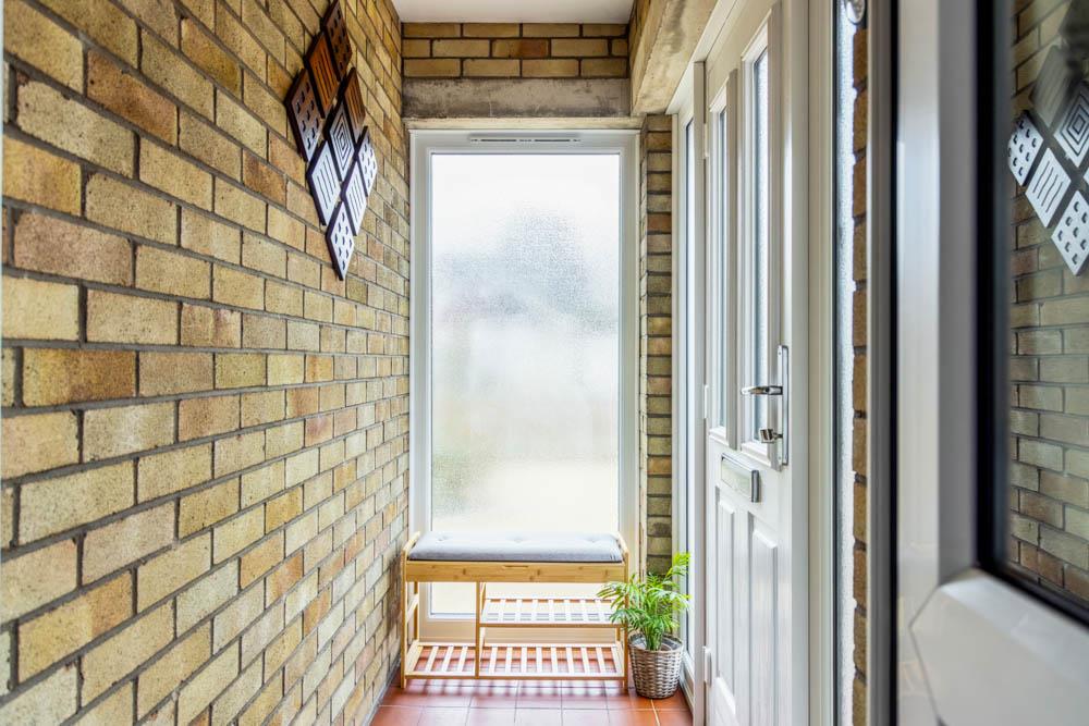 Composite glazed entrance door with glazed side panels, PVC double glazed window to front, tiled flooring, PVC double glazed door opening to hallway.