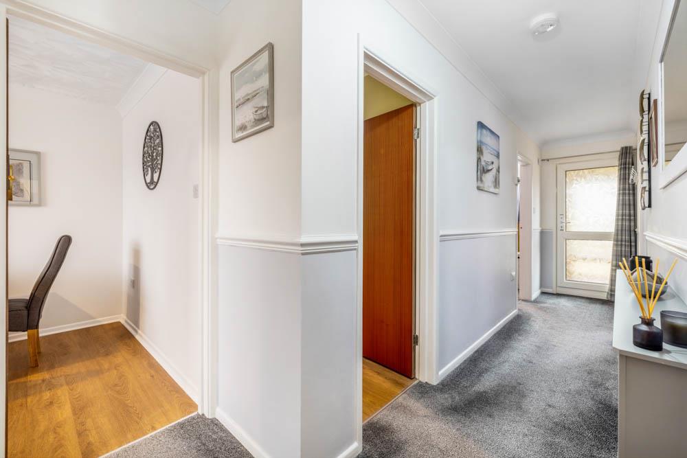 PVC double glazed door, radiator, loft access, doors to bedrooms, shower room, lounge and kitchen.