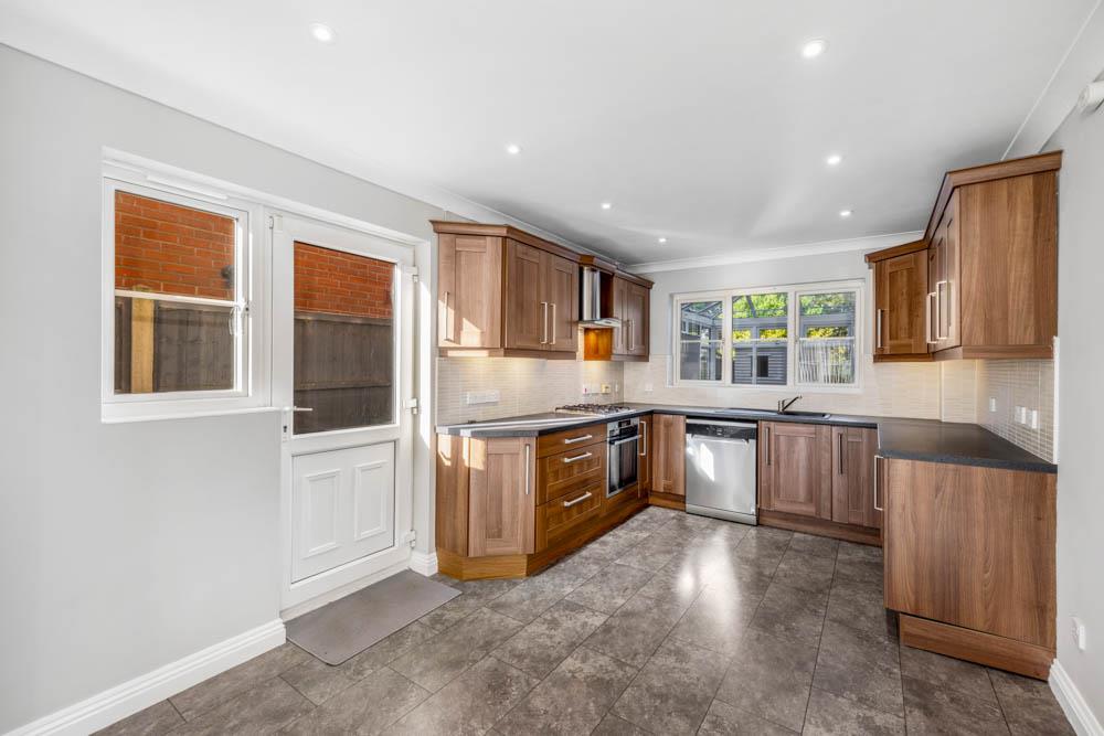 UPVC window to front and rear. UPVC door and window to side. Vertical anthracite radiator. Radiator. LVT flooring. Matching base and eye level unit with work surfaces over. Tiled splash backs. Composite sink drainer with mixer tap over. Space and plumbing for washing machine. Space and plumbing for dishwasher. Space for fridge/freezer. Built in electric oven. Four ring gas hob with extractor fan over.