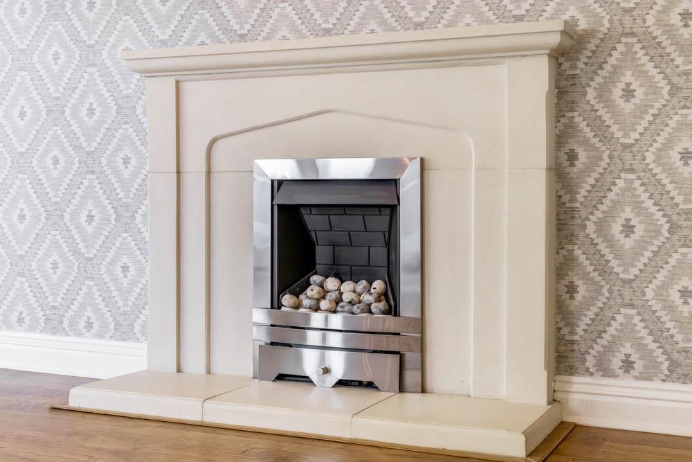 French doors to rear. Radiator. Feature gas fireplace with surround. Wood effect flooring. French doors to Conservatory.