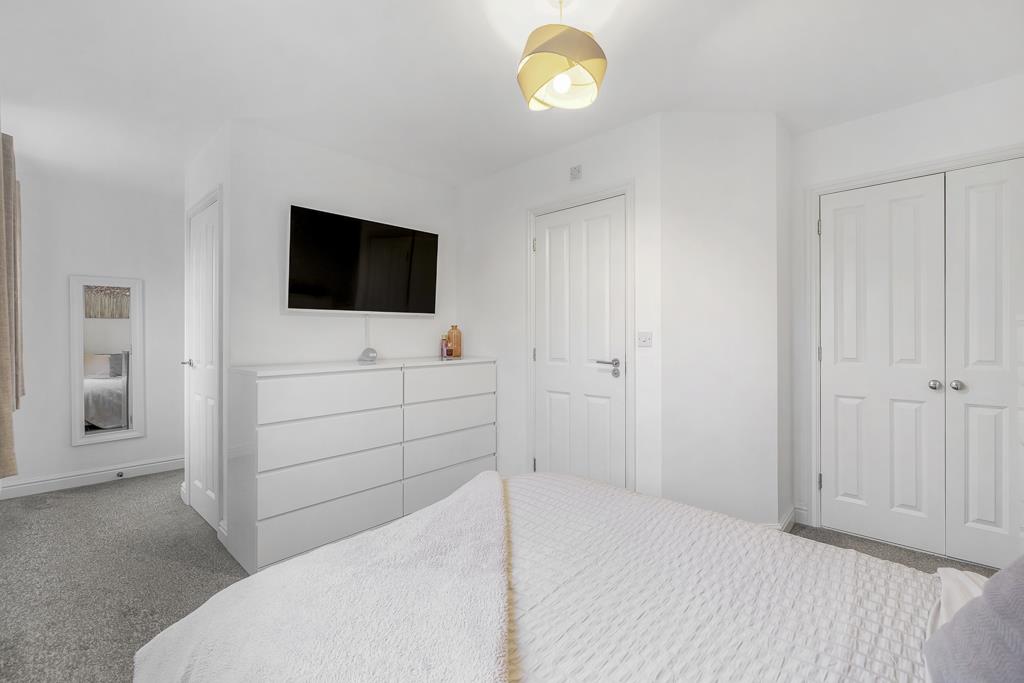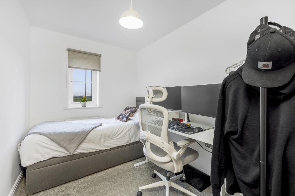 Two UPVC windows to front. Radiator. Carpeted. Built in wardrobe. Airing cupboard housing hot water cylinder.
