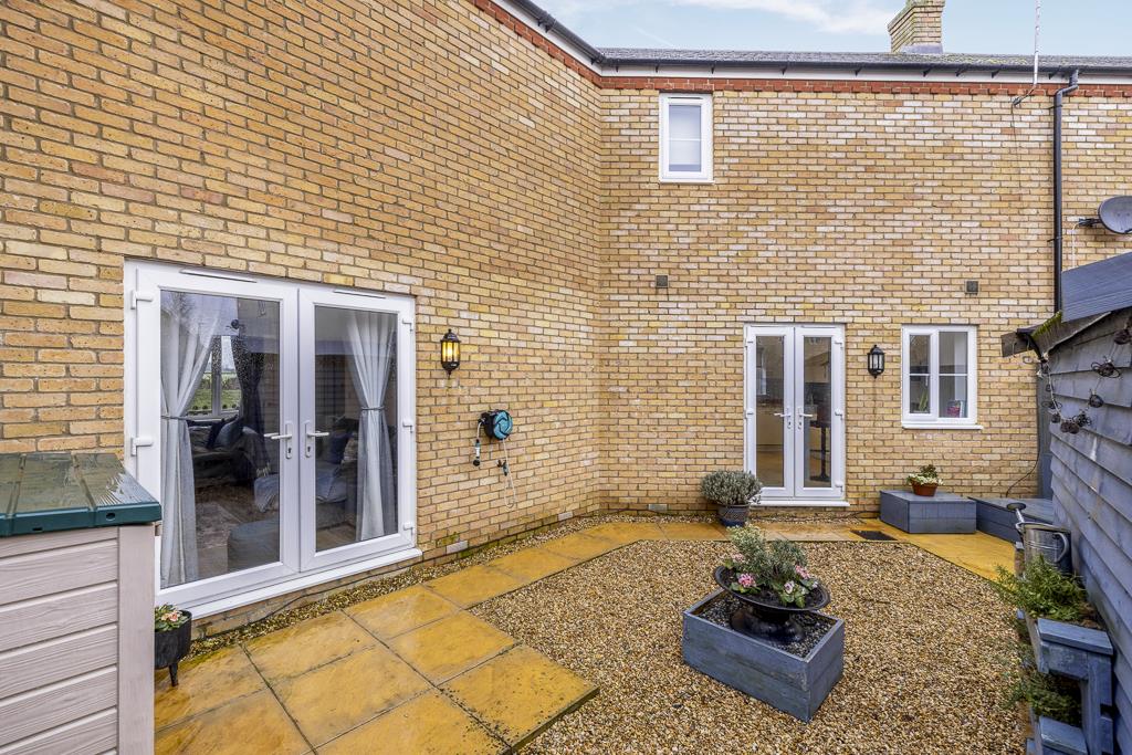 The rear of the property is enclosed by timber fencing. Gravel area. Patio area. Rear timber gate leading to driveway. Timber shed.