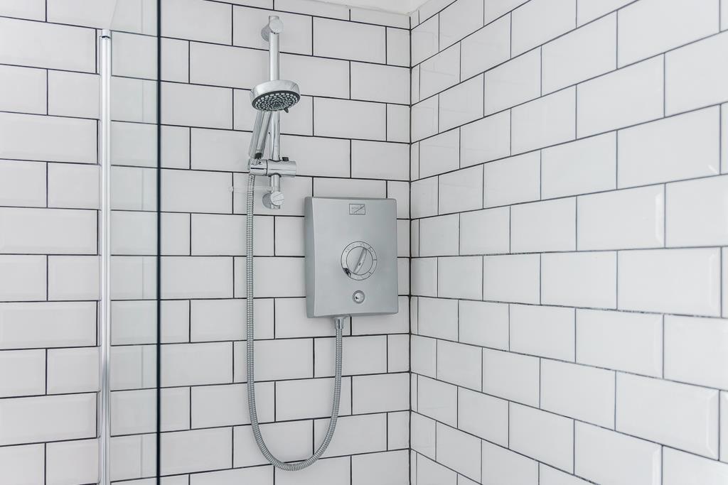 UPVC window to side. Spot lights. Shower cubicle with rainwater head and separate shower attachment. Wash hand basin. Toilet. Partially tiled walls. Extractor fan. Wooden flooring.