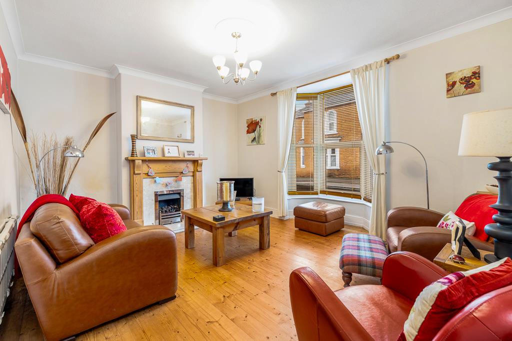 UPVC bay window to front. Feature fireplace with marble effect and wooden surround. Ceiling rose. Radiator. Wooden flooring.