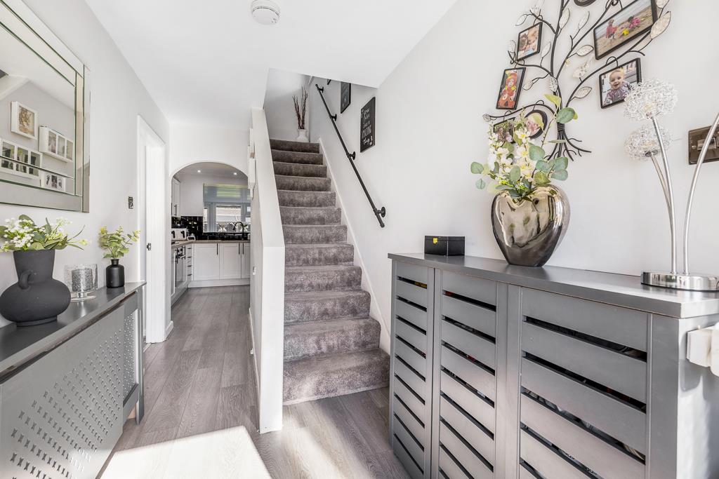 PVC entrance door to front with glazed side panels. Stairs to first floor. Wood effect flooring. Radiator.