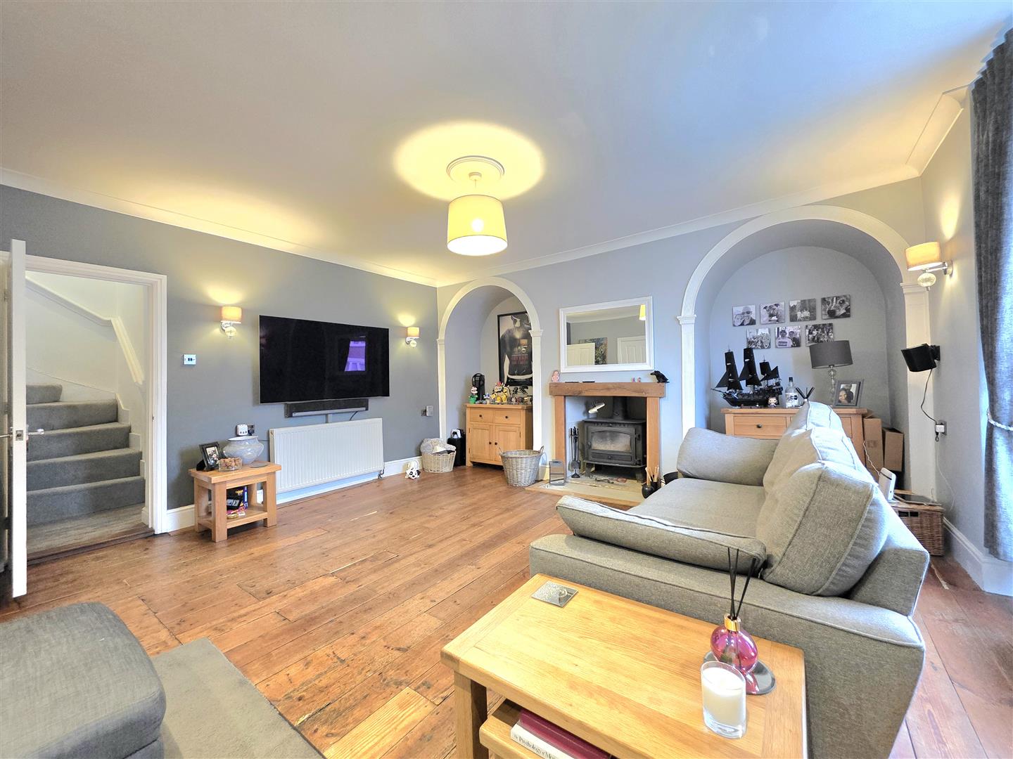 UPVC bay window. Feature fireplace with wooden surround. Radiator. Wooden flooring.