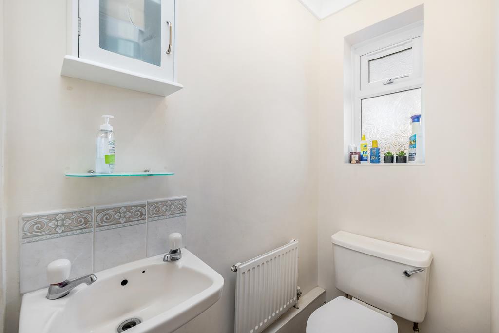 PVC double glazed window to front. Coving to ceiling. Radiator. Fitted toilet and wash hand basin with tiled splash back.