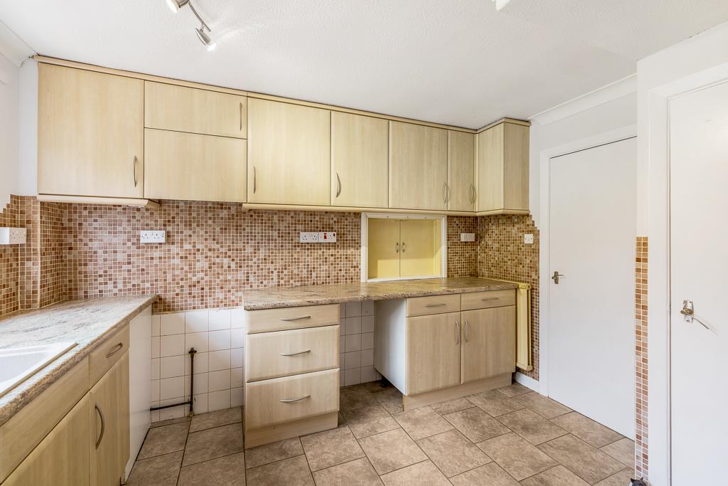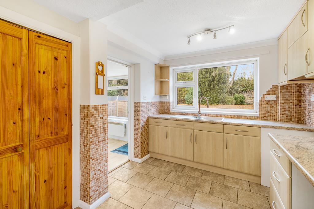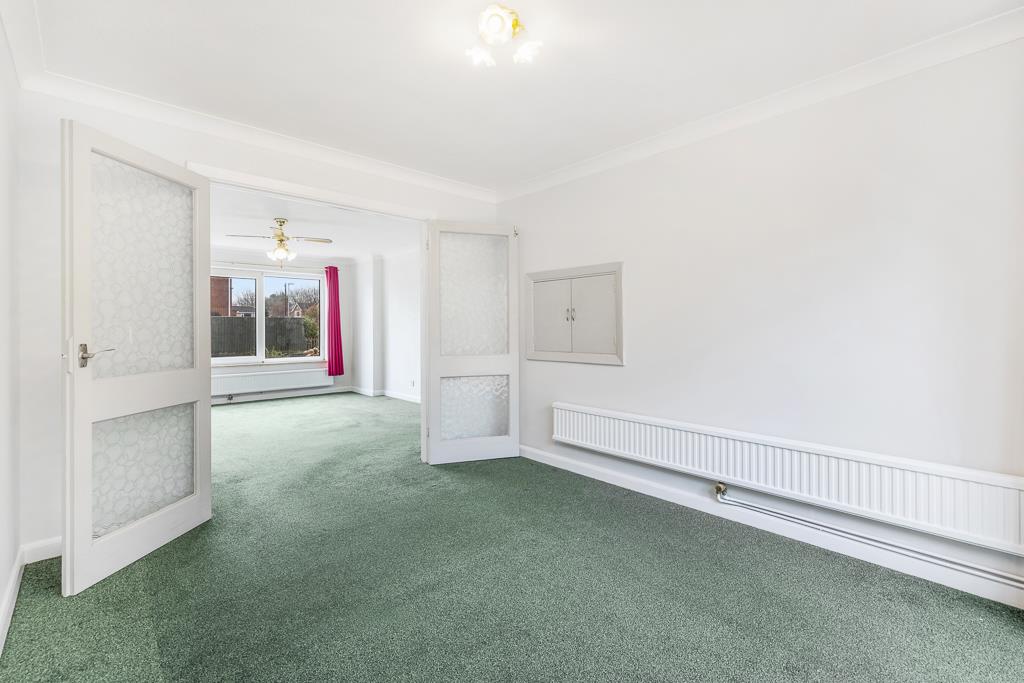 PVC double glazed window to rear. Coving to ceiling. Tiled flooring. Radiator. Built in under stairs storage cupboard. Walk in pantry with fitted shelving. Fitted with a matching base and eye level units with roll edge work surfaces over. Tiled splash backs. Serving hatch opening to dining room. Sink unit with drainer and mixer tap. Space for fridge/freezer. Space for cooker. Door opening to utility room.
