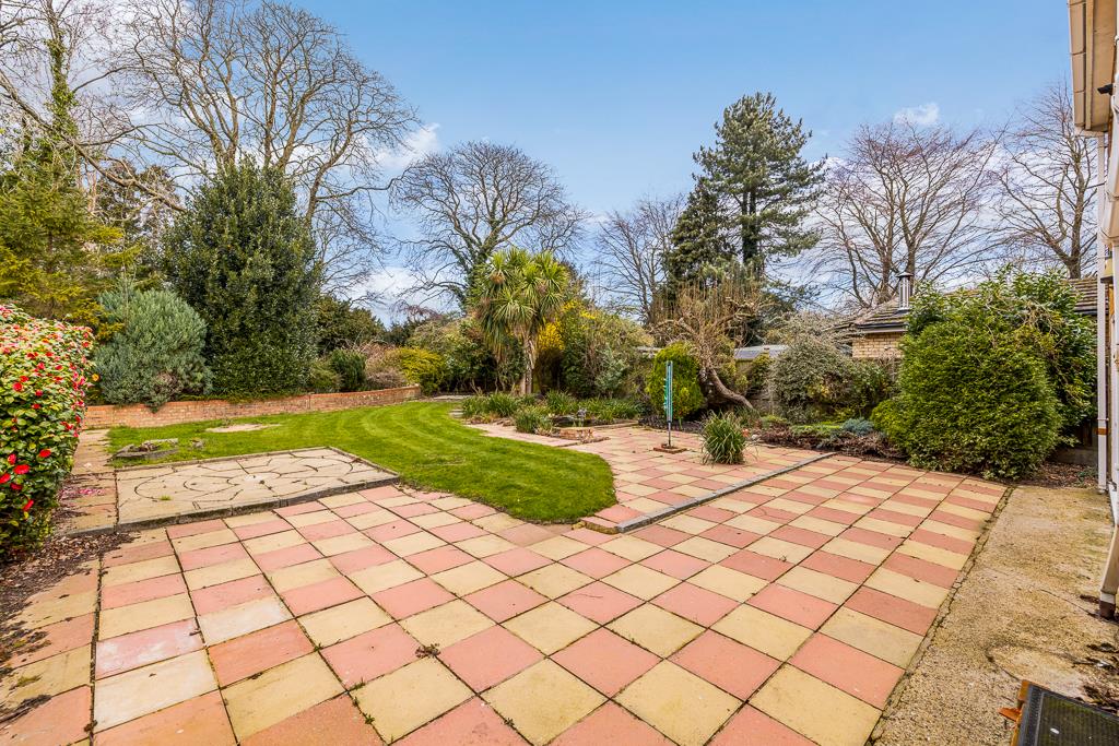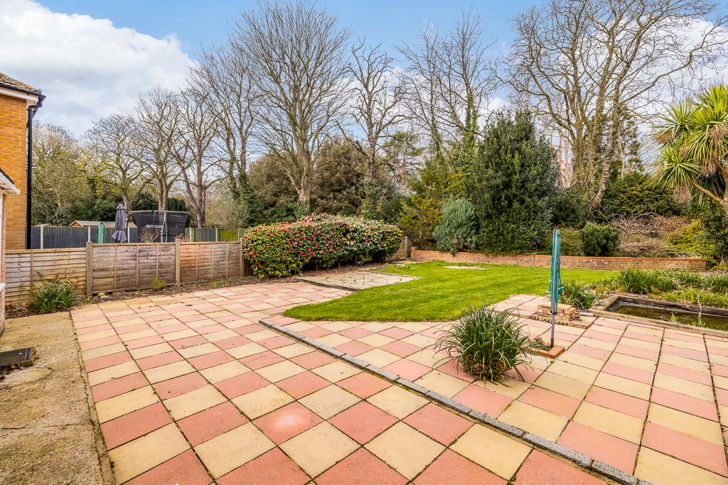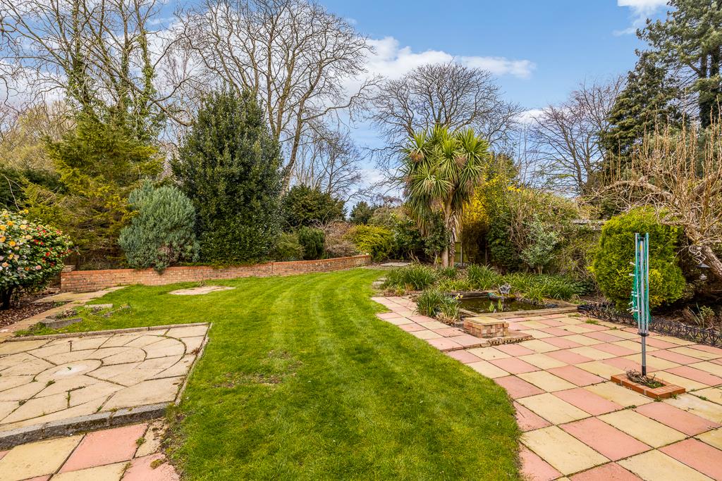 The rear garden is enclosed by timber fencing. Lawn area with planted borders. Patio seating area. Established trees and bushes. Outside light and cold water tap available.