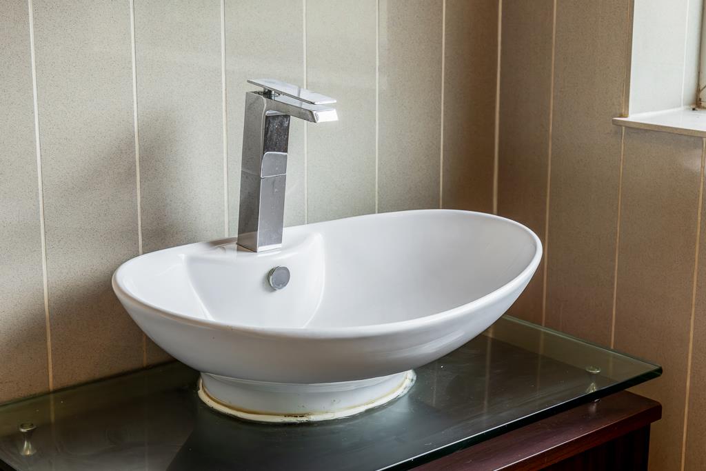PVC double glazed window to rear. Fitted close coupled toilet with push button flush. Wash hand basin.