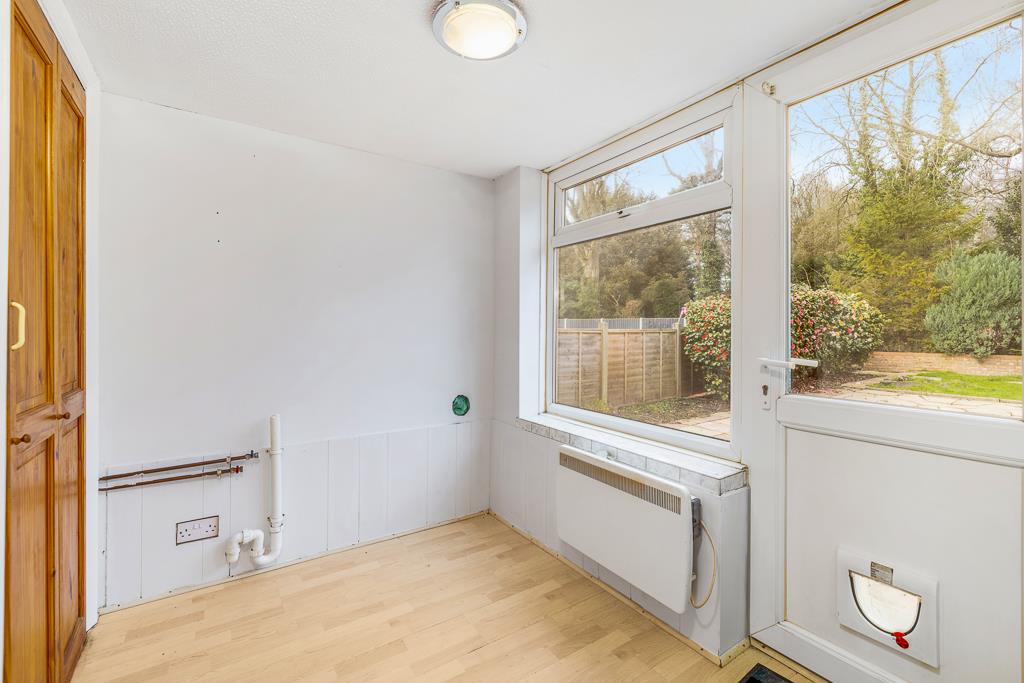 PVC double glazed door and window to rear. Laminate flooring. Wall mounted electric heater. Door opening to cloakroom. Space and plumbing for washing machine and tumble dryer.