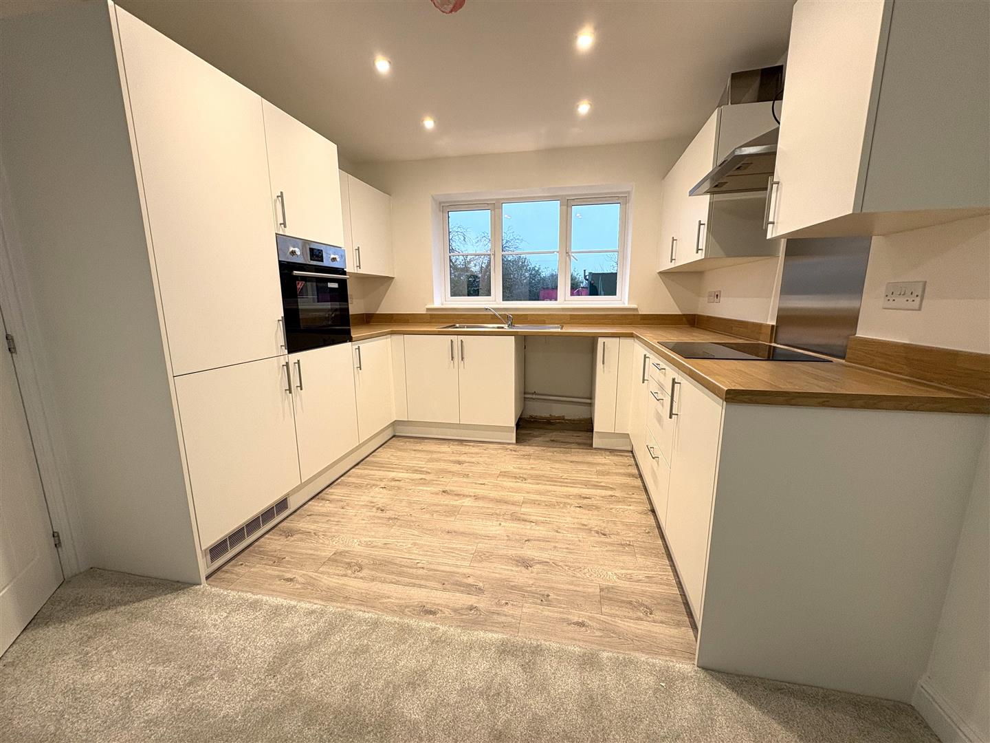 UPVC window to front aspect. base and wall units with worktop over, integrated fridge/freezer, oven, hob, vinyl flooring