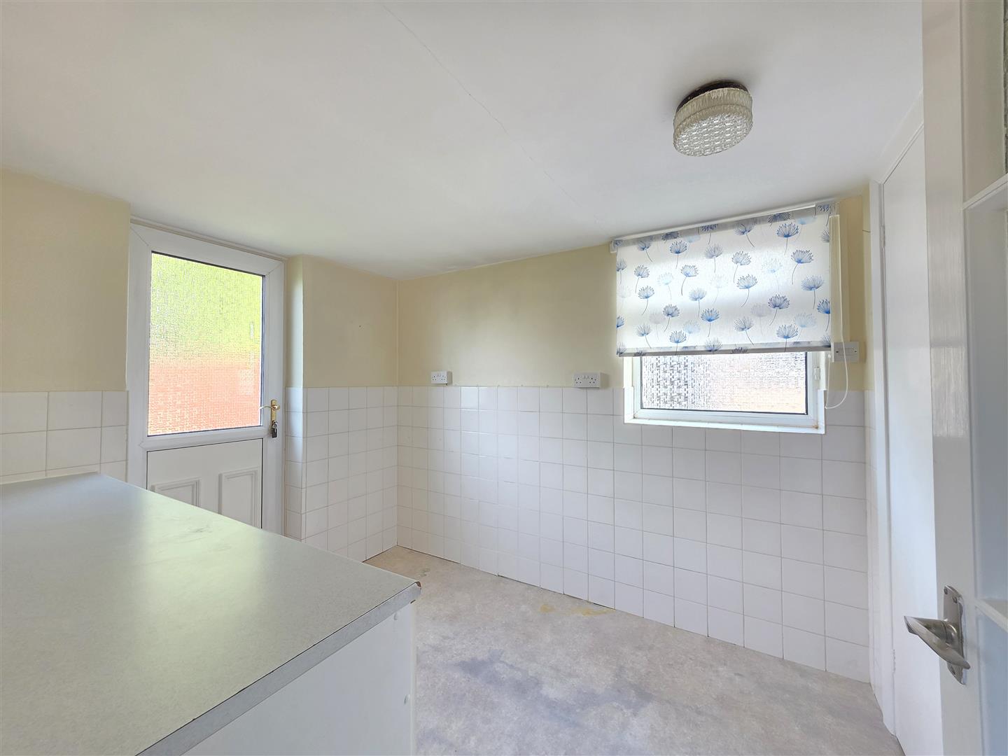 UPVC door to rear. Window to side. Space and plumbing for washing machine. Space for tumble dryer. Space for tall fridge/freezer. Base units with worktop over. Partially tiled walls. Vinyl flooring.