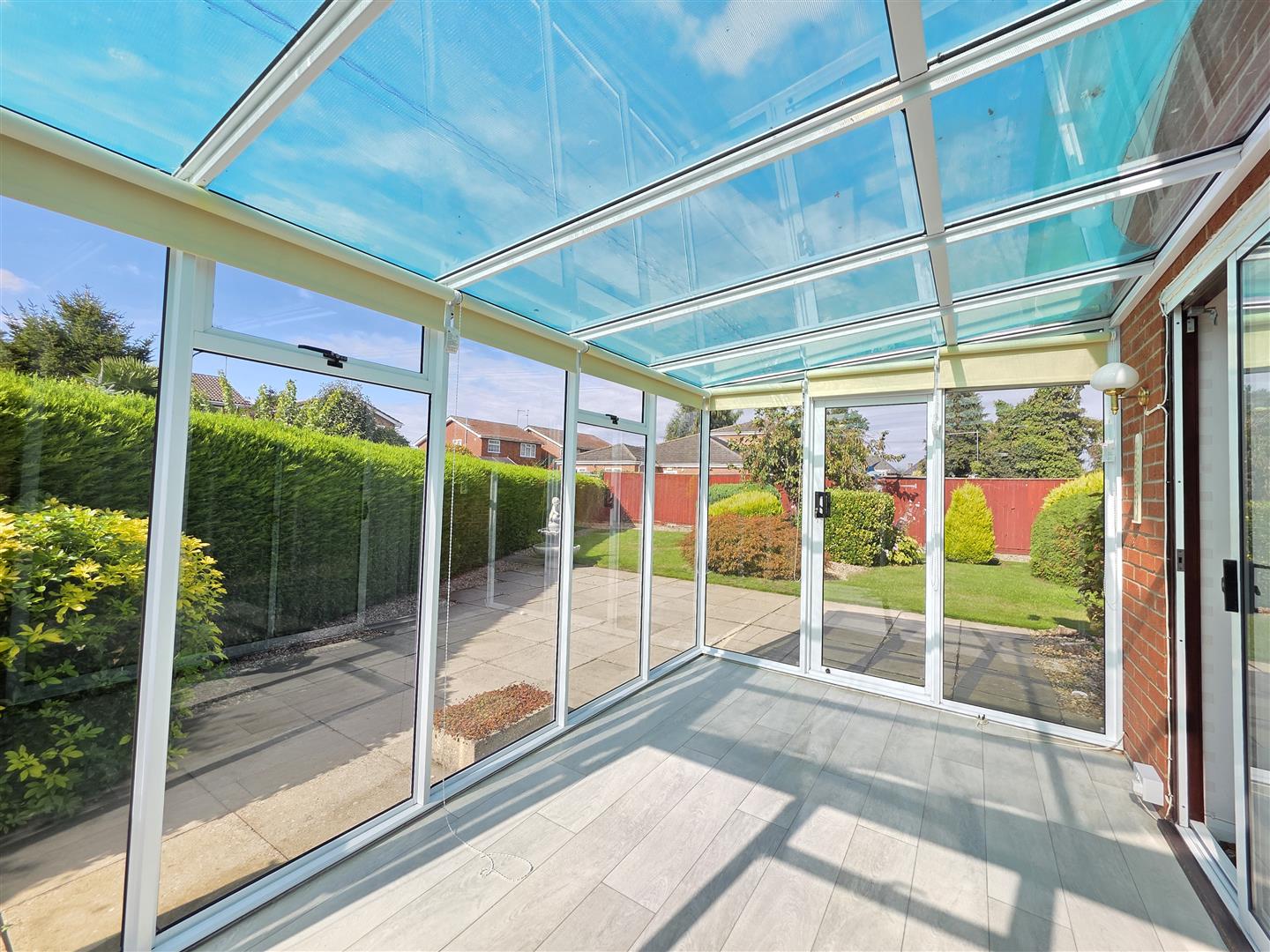 Glazed construction and glass roof. Wood effect vinyl flooring. Sliding door leading to patio.
