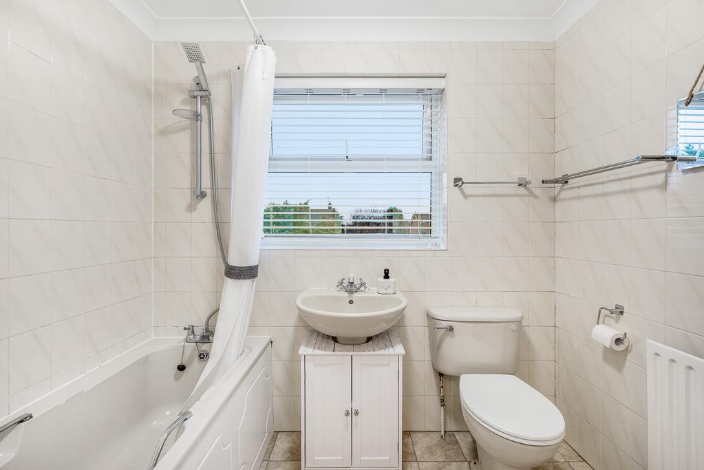 UPVC double glazed window to rear. Toilet. Wash hand basin. Panelled bath with shower over. Radiator. Fully tiled walls. Vinyl flooring. Extractor fan