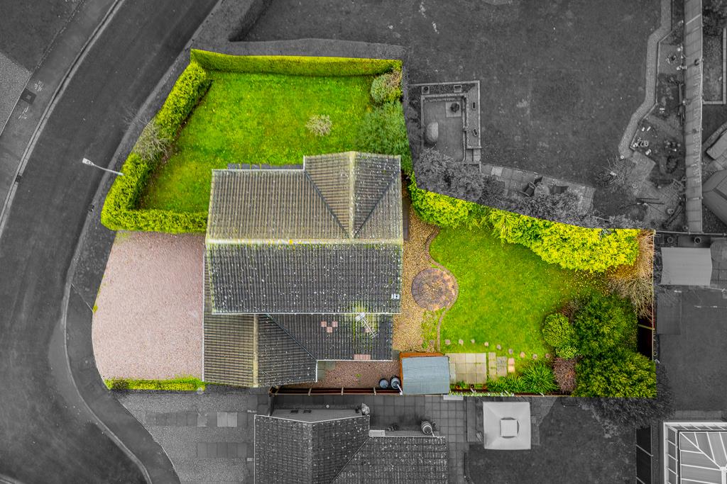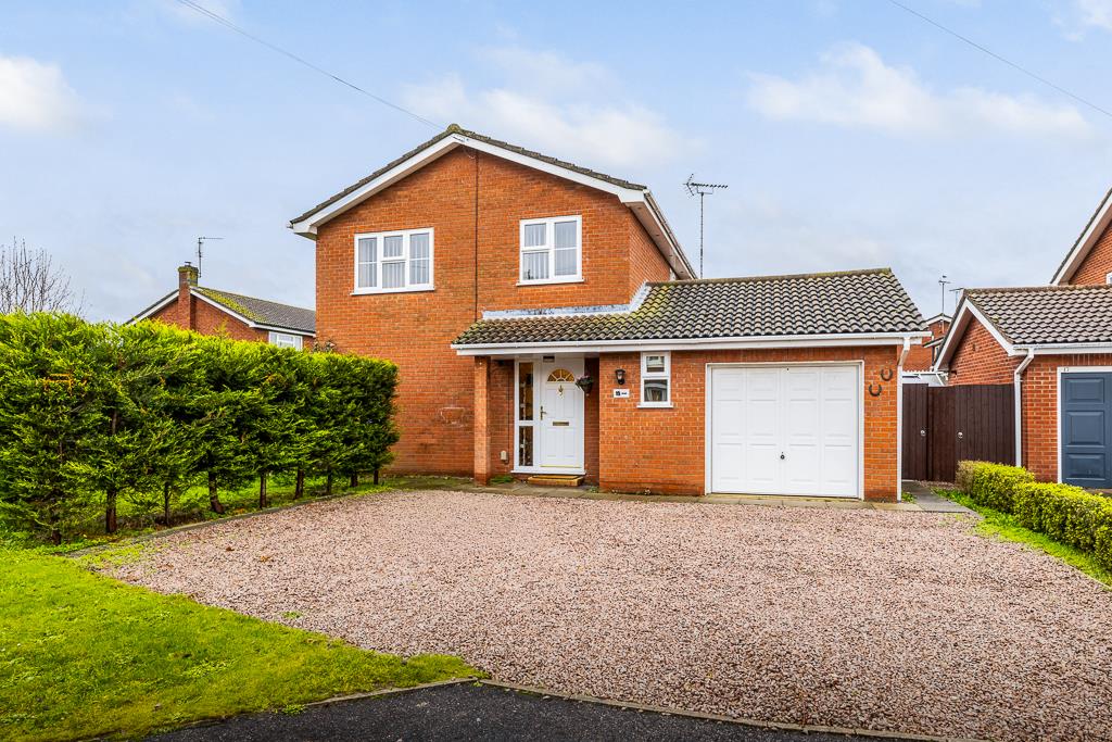 The property is approached by a driveway leading to the garage. Gated side access to the rear garden. The front and side gardens has a lawn area with flower and shrub borders.