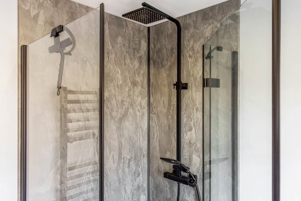 UPVC window to front. Shower cubicle with rainfall head and separate shower attachment over. Toilet and wash hand basin set in vanity unit. Fully tiled walls. Wood effect tiled flooring. Wall mounted heated towel rail.