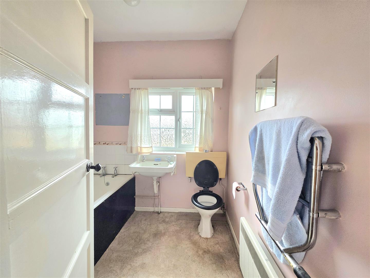 PVC double glazed window to rear. Wall mounted electric heater. Electric towel rail. Bath. Wash hand basin. Toilet. Shaver point.