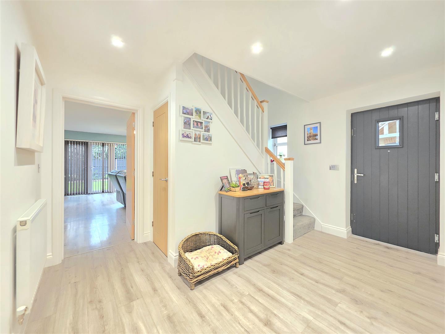 Composite glazed entrance door, PVC double glazed window to front, LVT flooring, stairs to first floor landing, radiator. Doors to bedroom three, wetroom utility room and kitchen living room.