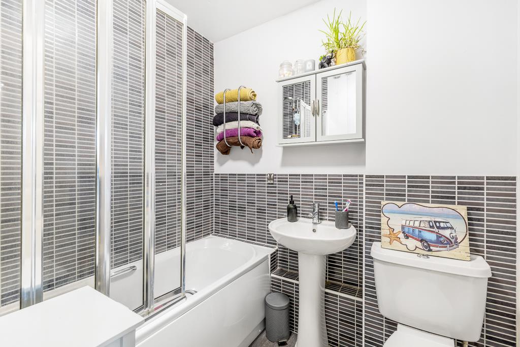 Fitted with three piece suite comprising bath with shower attachment over. Toilet. Wash hand basin. Radiator.