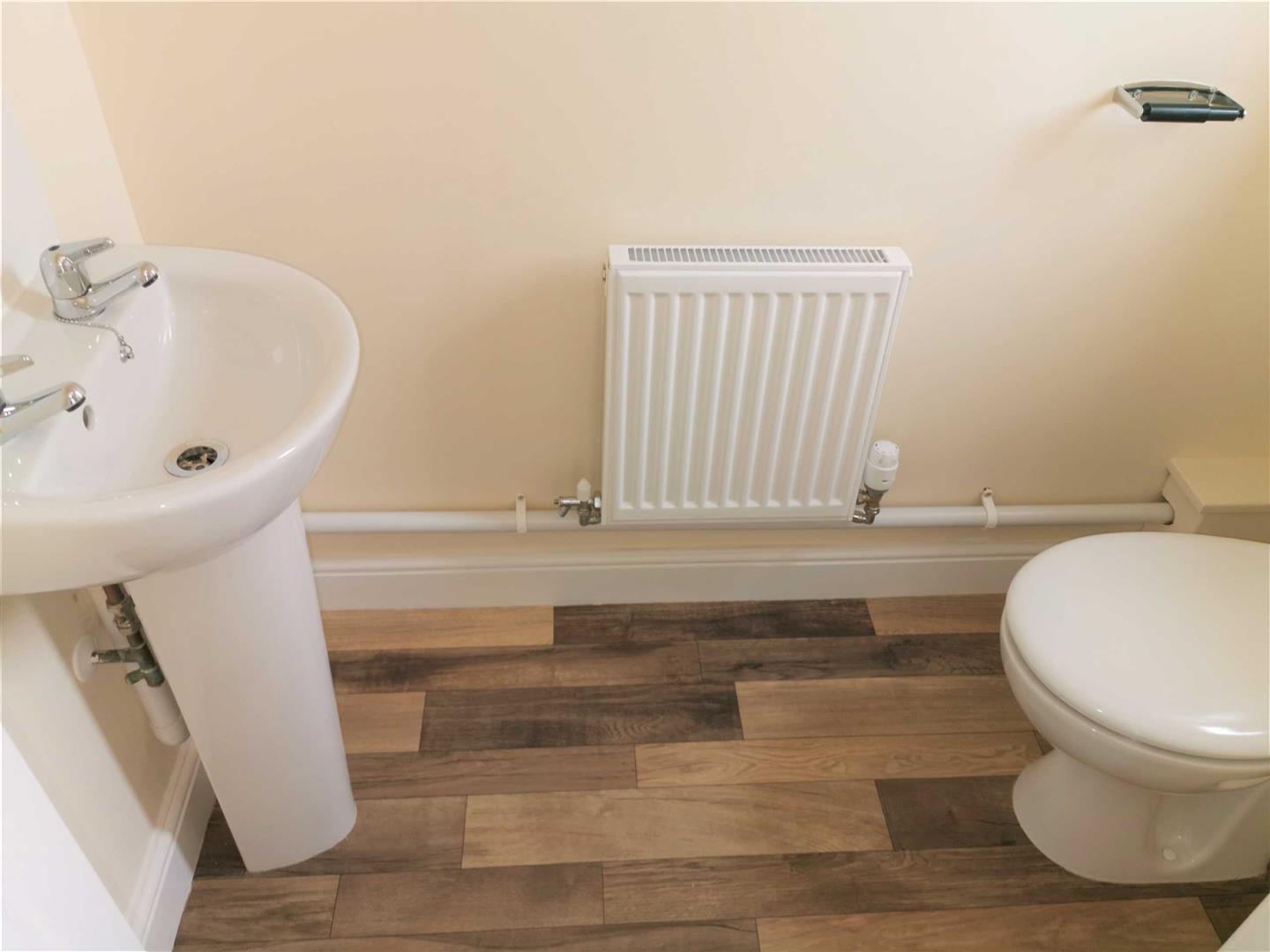 WC unit and hand wash basin. Skimmed ceiling and walls with tiled splashback. Upvc window.