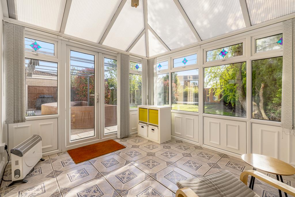 PVC double glazed construction with polycarbonate roof. Tiled flooring. Radiator. French doors opening to garden.