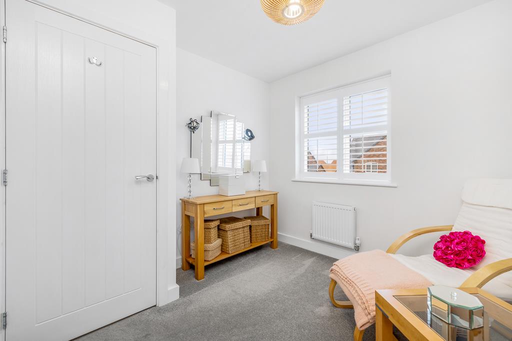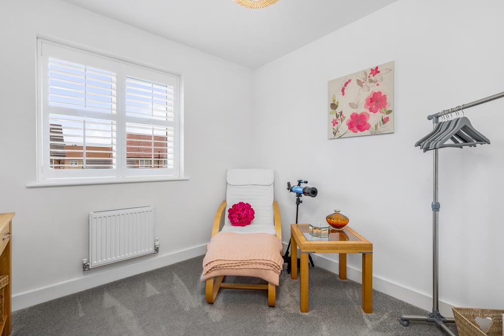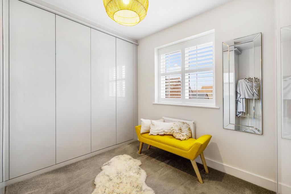 PVC double glazed window to rear with fitted window shutter. Skimmed ceiling. Radiator. Bespoke fitted full wardrobes with hanging rail, shelving and built in lighting.