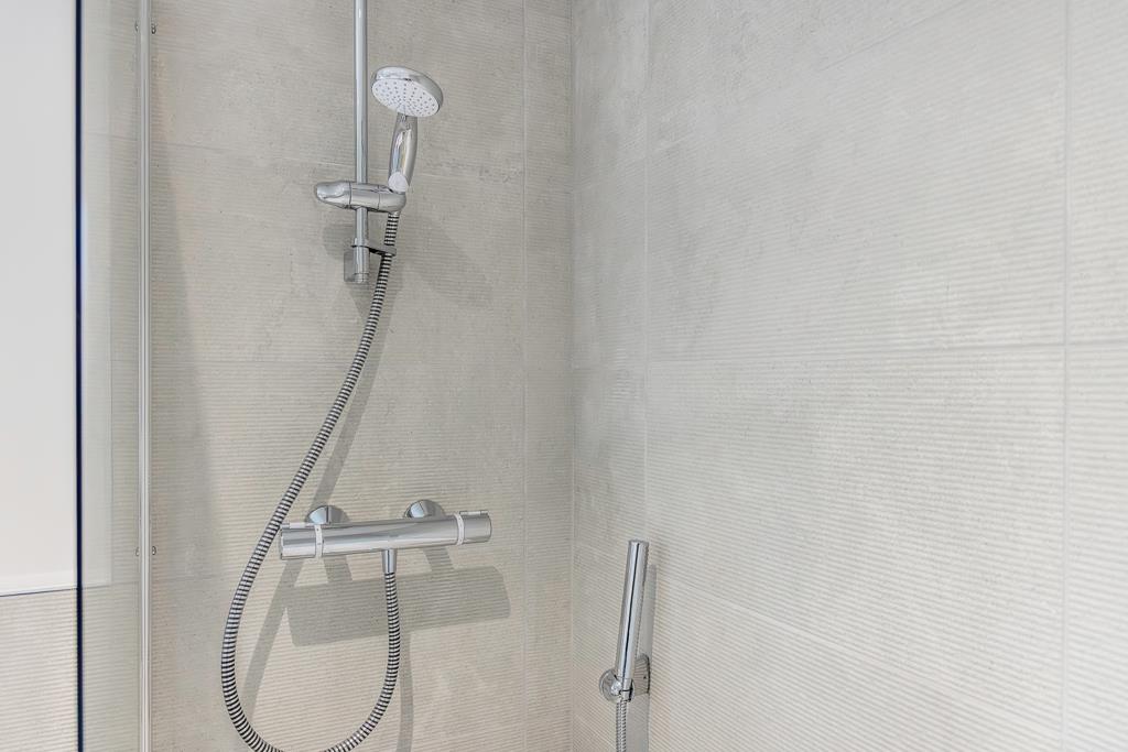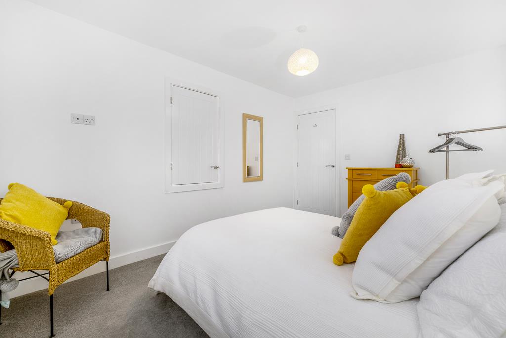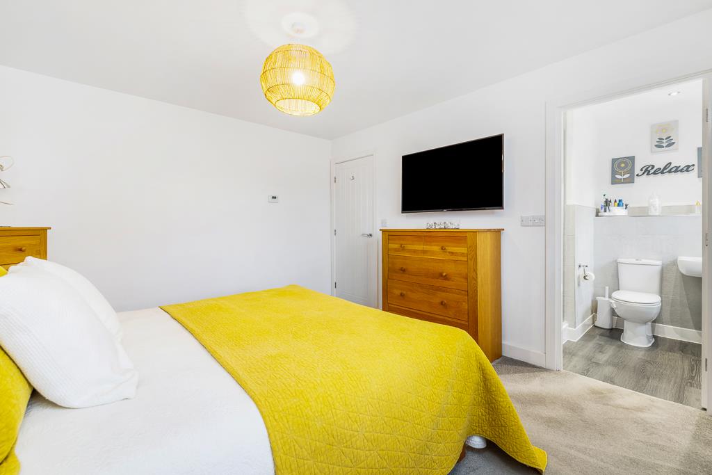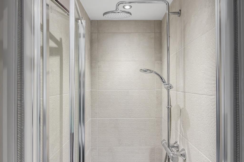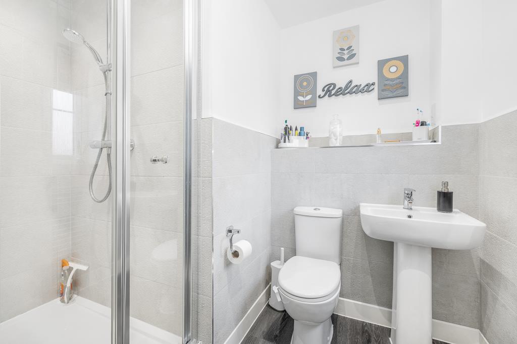 PVC double glazed window to front. Skimmed ceiling. Recessed spot lighting. Extractor fan. LVT flooring. Chrome heated towel rail. Shaver point. Fitted oversized shower enclosure with glass folding door. Chrome thermostatic bar shower riser, rainfall head and separate shower attachment. Pedestal wash hand basin with chrome mixer tap. Close couple toilet with push button flush.