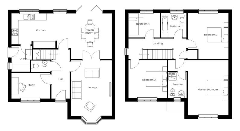 The Windsor is a spacious and well-appointed four-bedroom home, designed for modern family living. At its heart is a generous open-plan kitchen and dining area, complete with bi-folding doors that flood the space with natural light and provide seamless access to the garden—perfect for both everyday living and entertaining. The large lounge, accessible through elegant double doors from the dining room, offers a welcoming retreat for relaxation. A separate study provides a quiet space for work or reading, while a utility room adds extra convenience. Upstairs, the impressive master bedroom boasts ample space along with a private ensuite, creating a luxurious sanctuary. With its thoughtfully designed layout and balance of style and practicality, The Windsor is an exceptional home for families seeking both comfort and sophistication.