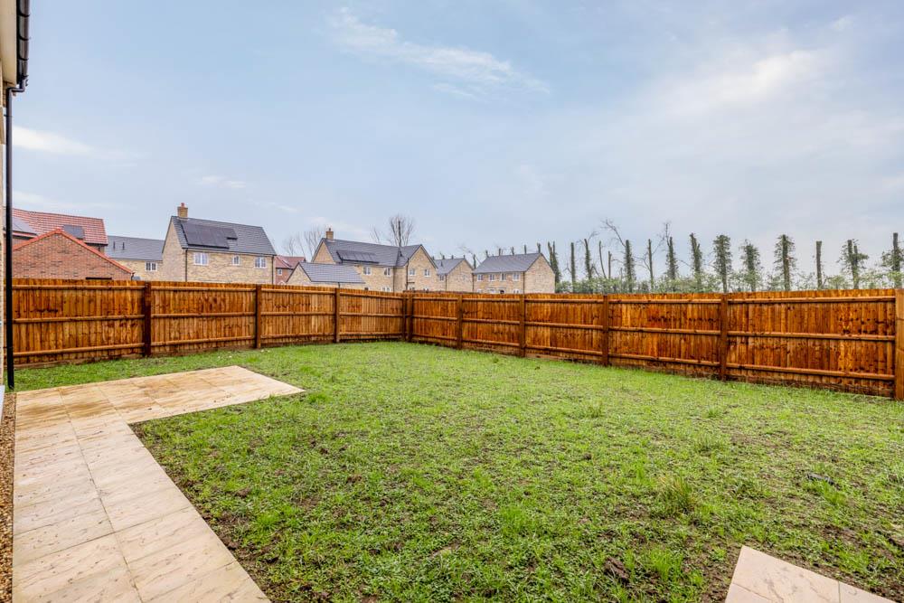 The rear garden is enclosed by timber fencing. Lawn area. Patio area.