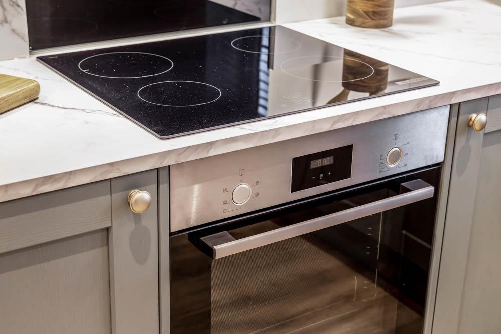 Window to front and rear. Matching range of base and eye level units with work surfaces over. Sink unit with drainer and mixer tap. Built in oven. Induction hob with extractor hood over. Integrated dishwasher. Integrated fridge/freezer. Vinyl flooring.
