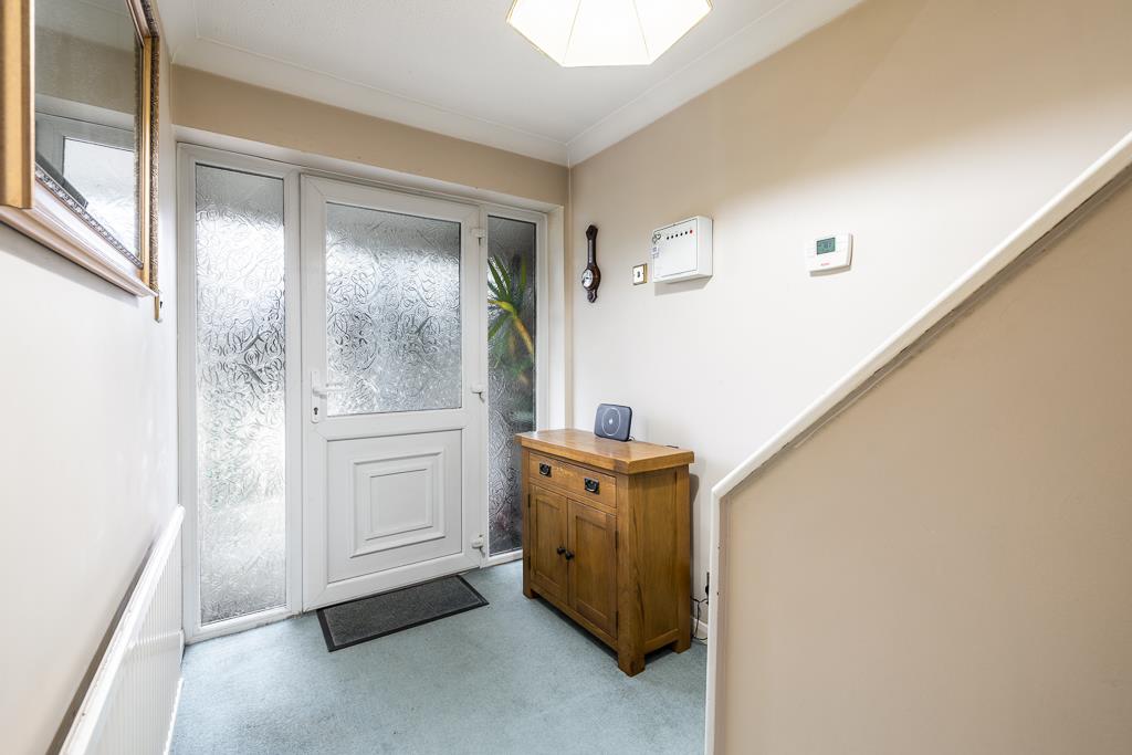 UPVC door with glazed side panels. Radiator. Carpeted. Stairs to first floor landing.