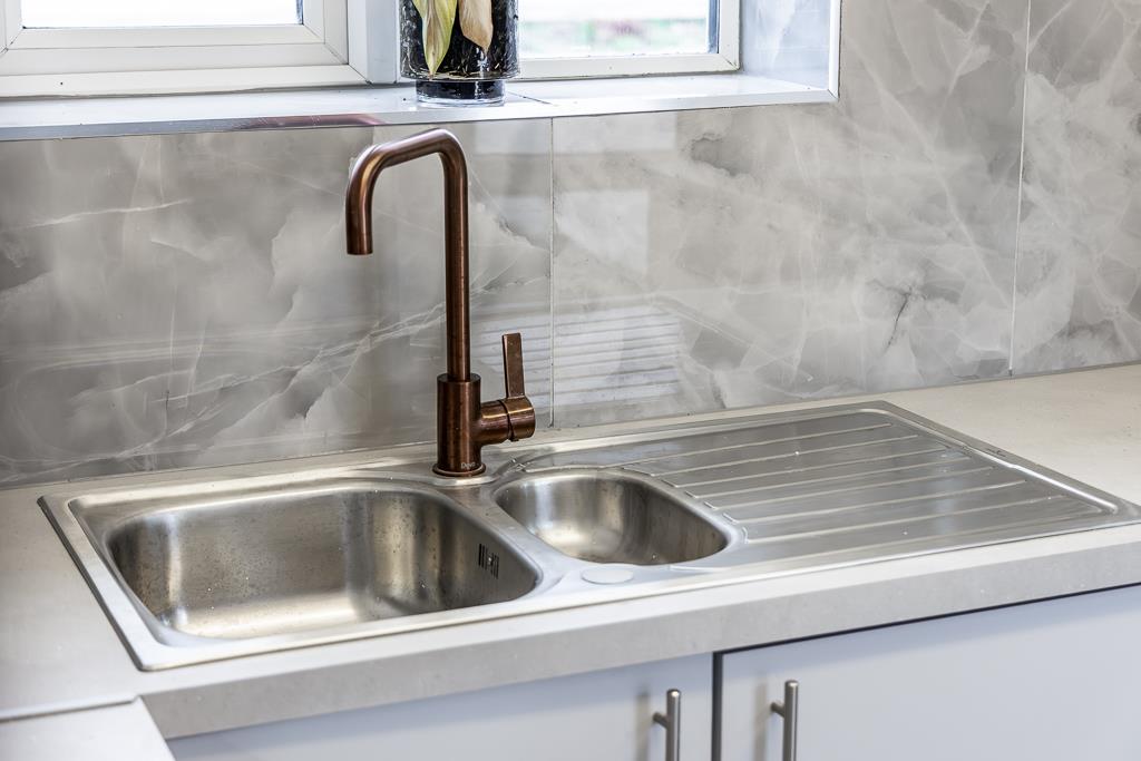 UPVC double glazed window to front and door to rear. Sink with drainer and mixer tap. Matching range of base and eye level units with roll edge work surface. Tiled splash backs. Integrated electric hob and oven. Plumbing for washing machine. Tiled flooring.