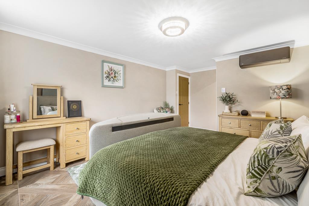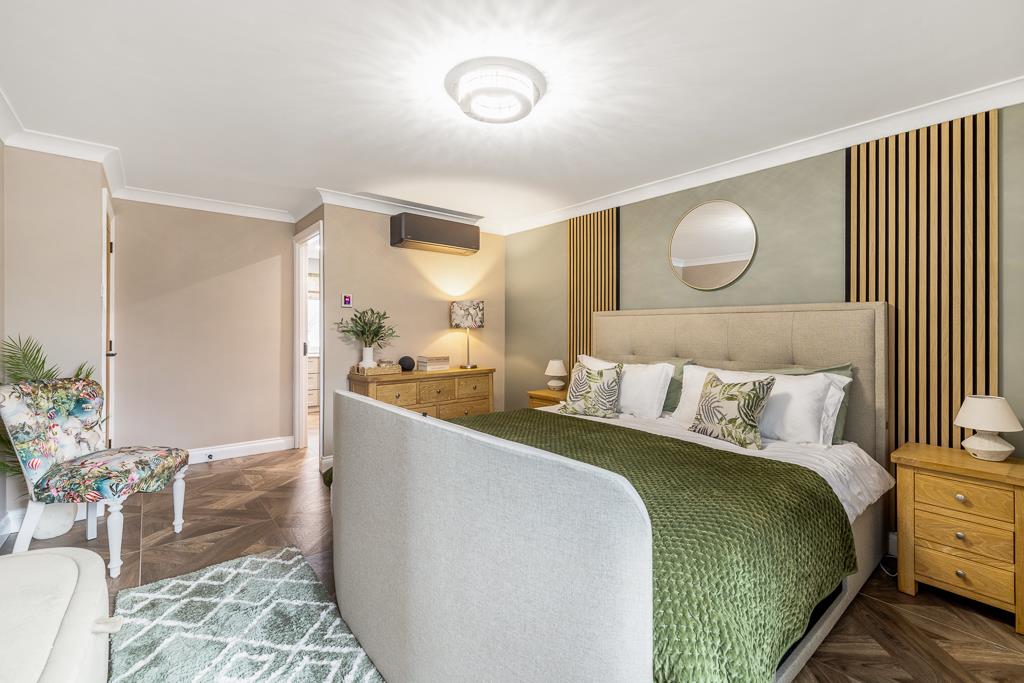 PVC double glazed window to front. Coving to skimmed ceiling. Tiled flooring. Radiator. Wall mounted air conditioning unit. Door to dressing room. Under floor heating. The blinds to windows are motorised.