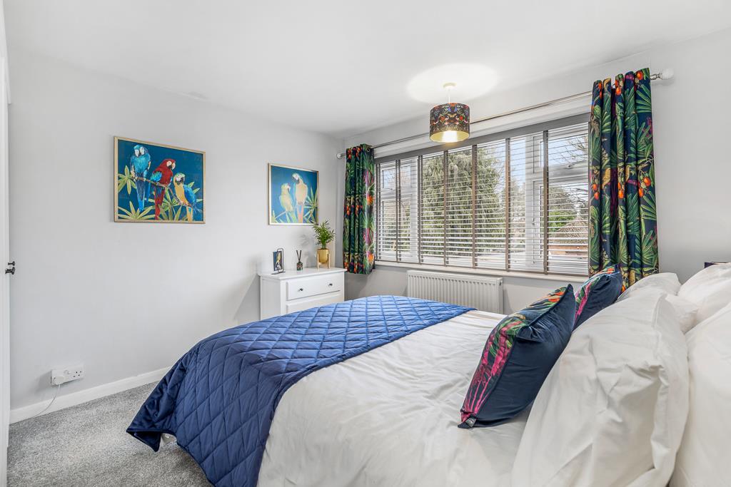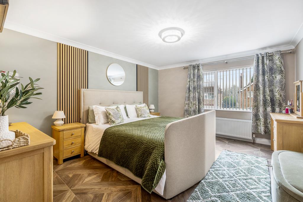 PVC double glazed window to front. Skimmed ceiling. Vertical column radiator. Bespoke fitted bedroom furniture comprising three door wardrobe, shelving, chest of drawers, dressing table/office desk and bedside tables. The blinds to windows are motorised.