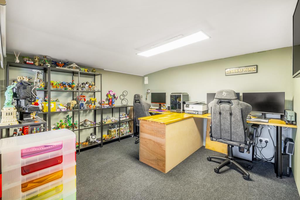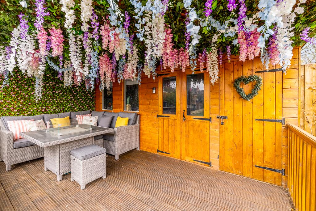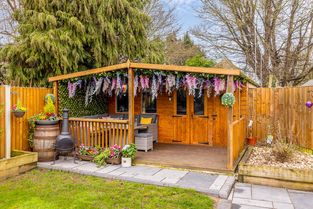 The rear garden is enclosed by timber fencing. Well landscaped to include generous patio seating area with lawn and raised bed planters. There is a timber store. Cabin and log store (3.36m x 3.60m) Outside light, power points and cold water tap available. Timber garden building with timber deck and veranda. Power, light and workbench included.