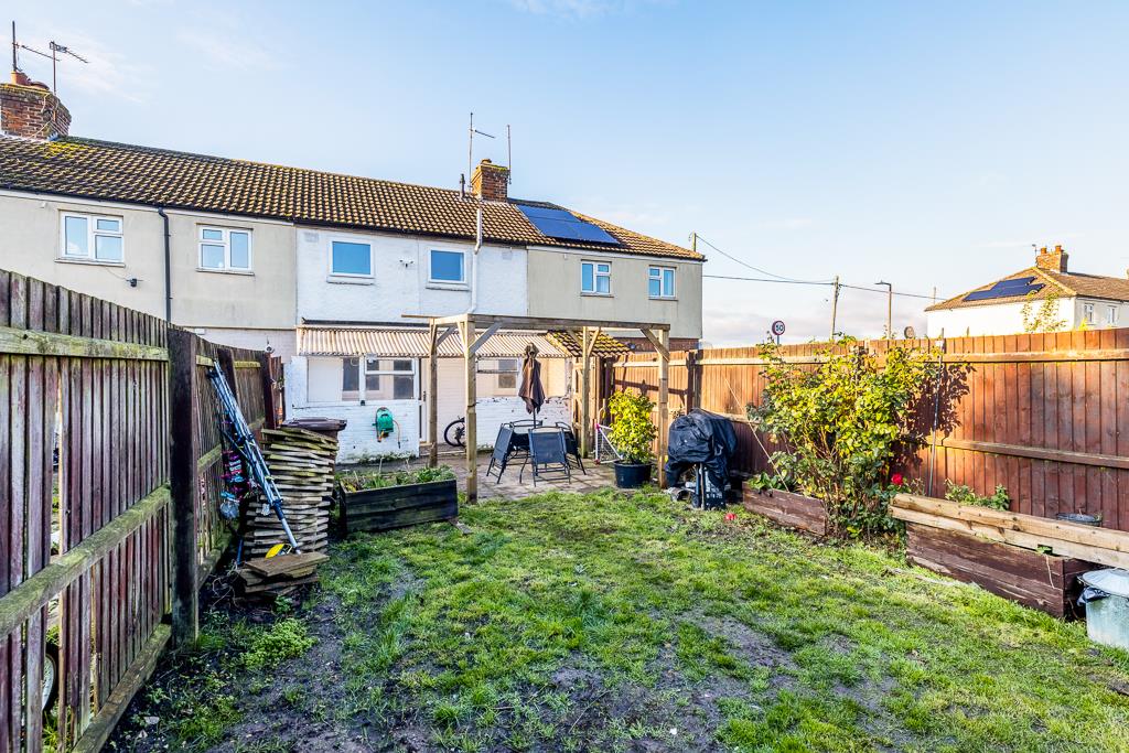 This home is the only one in the row to benefit from off-road parking, featuring a raised driveway to the front. To the rear, you’ll find a generously sized garden, recently enhanced with a good-sized shed.