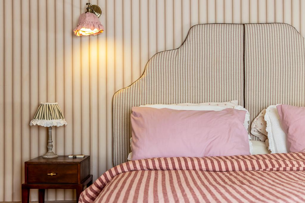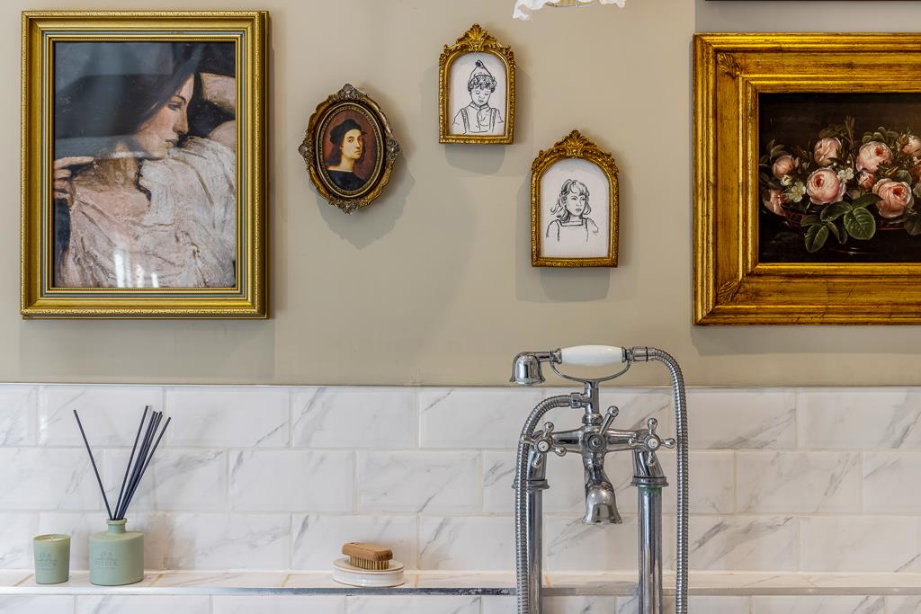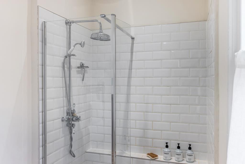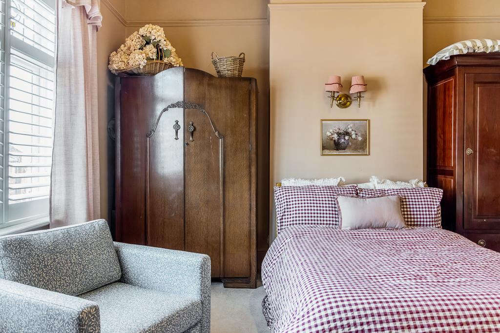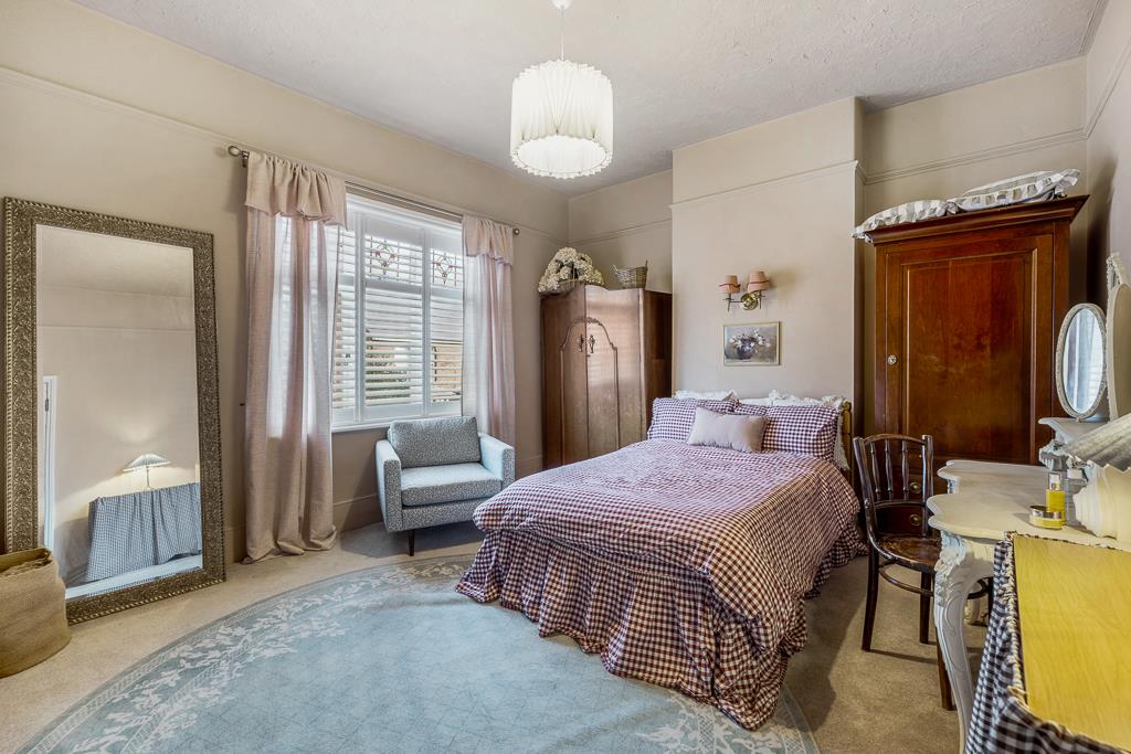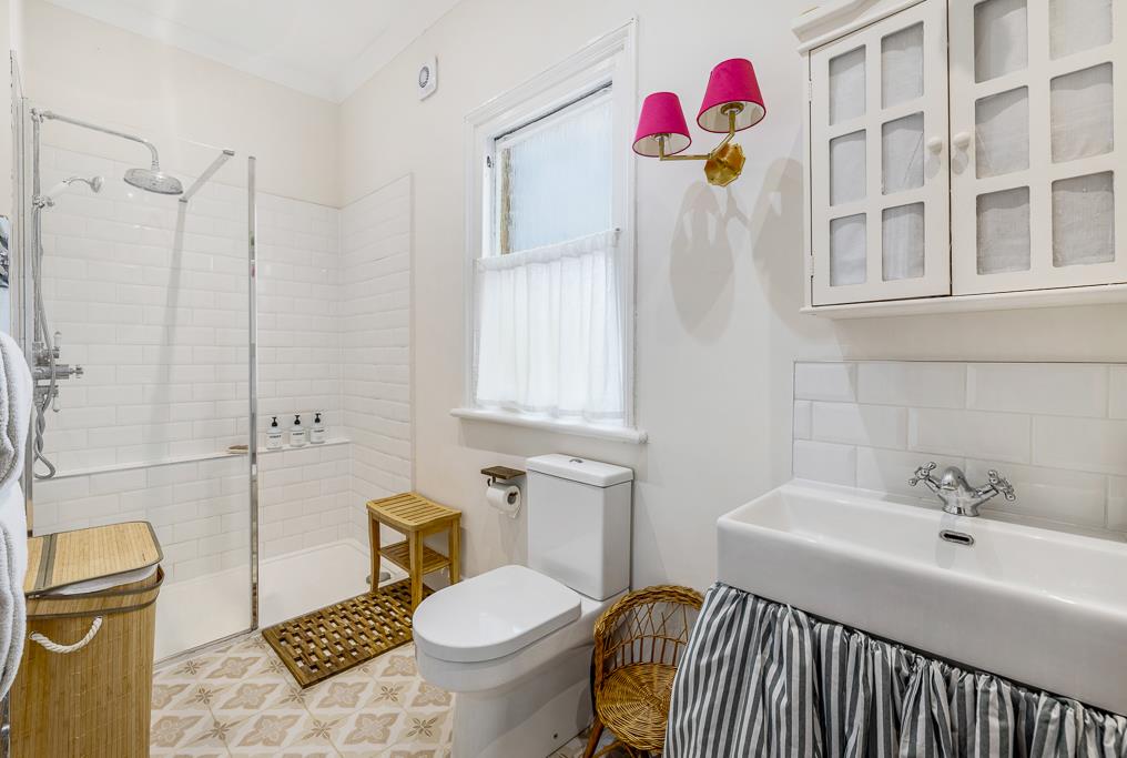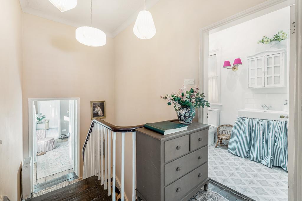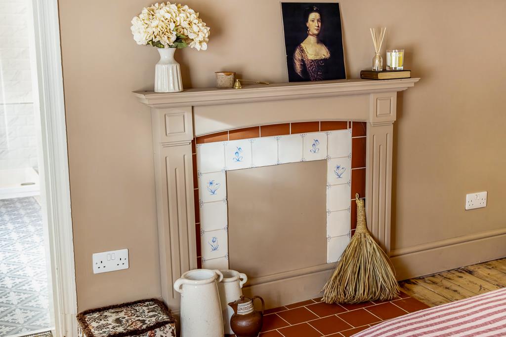 Upstairs, the split-level staircase leads first to the master bedroom, featuring original floorboards and a fireplace, along with a door to the stunning en-suite bathroom, complete with a freestanding bath and walk-in double shower, creating a truly boutique hotel feel.