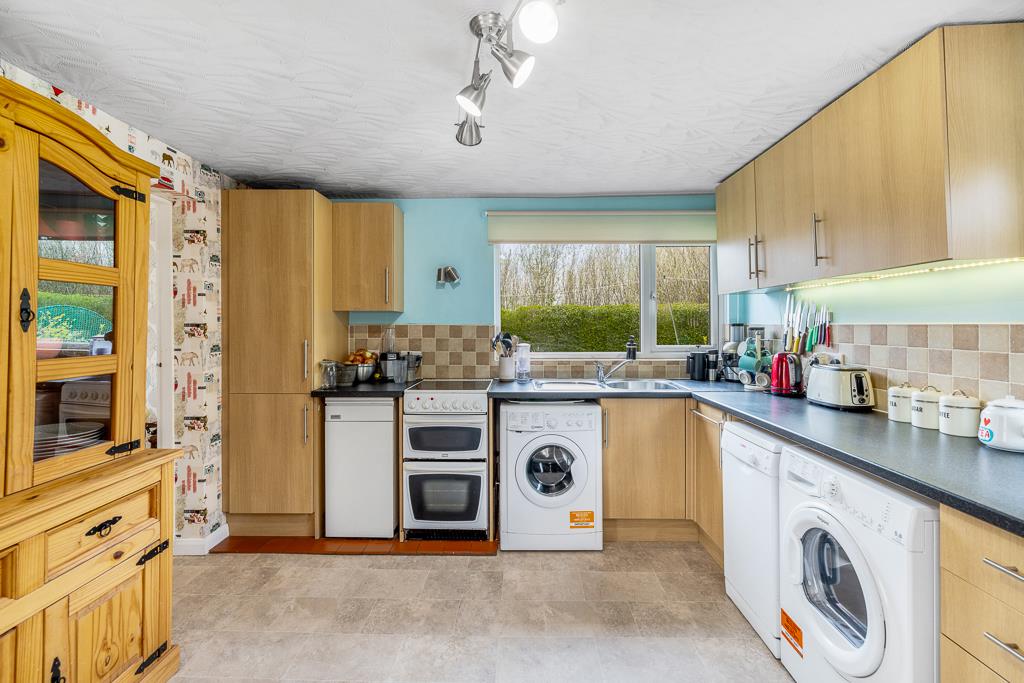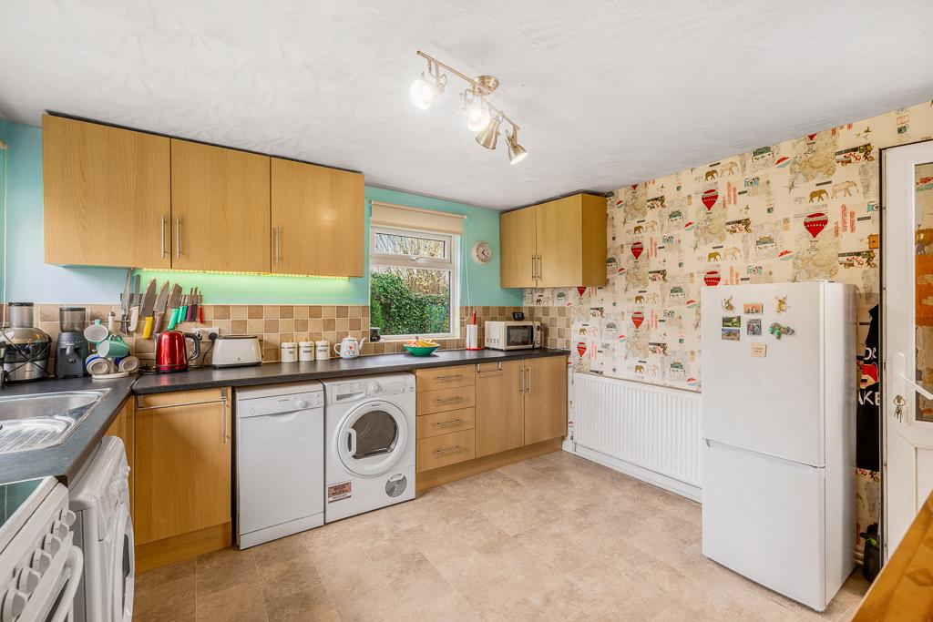 UPVC window to rear and side. Matching range of base and eye level units with work surfaces over. Sink unit with drainer and mixer tap. Tiled splash backs. Space for cooker. Space for fridge/freezer. Space and plumbing for dishwasher. Space and plumbing for washing machine. Radiator. Vinyl flooring.