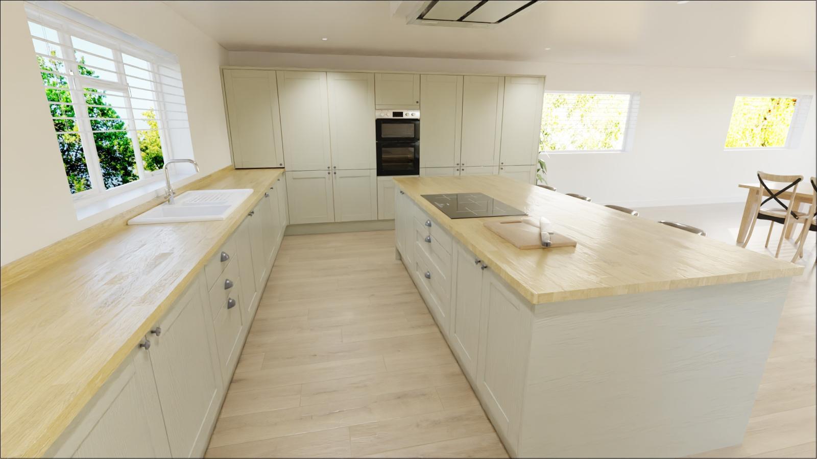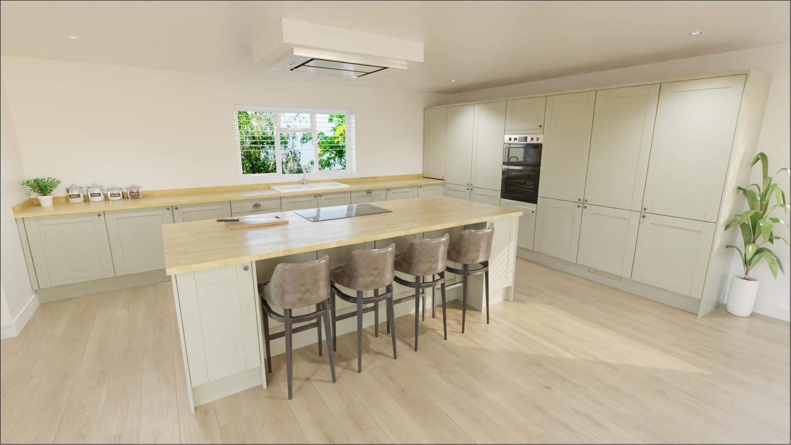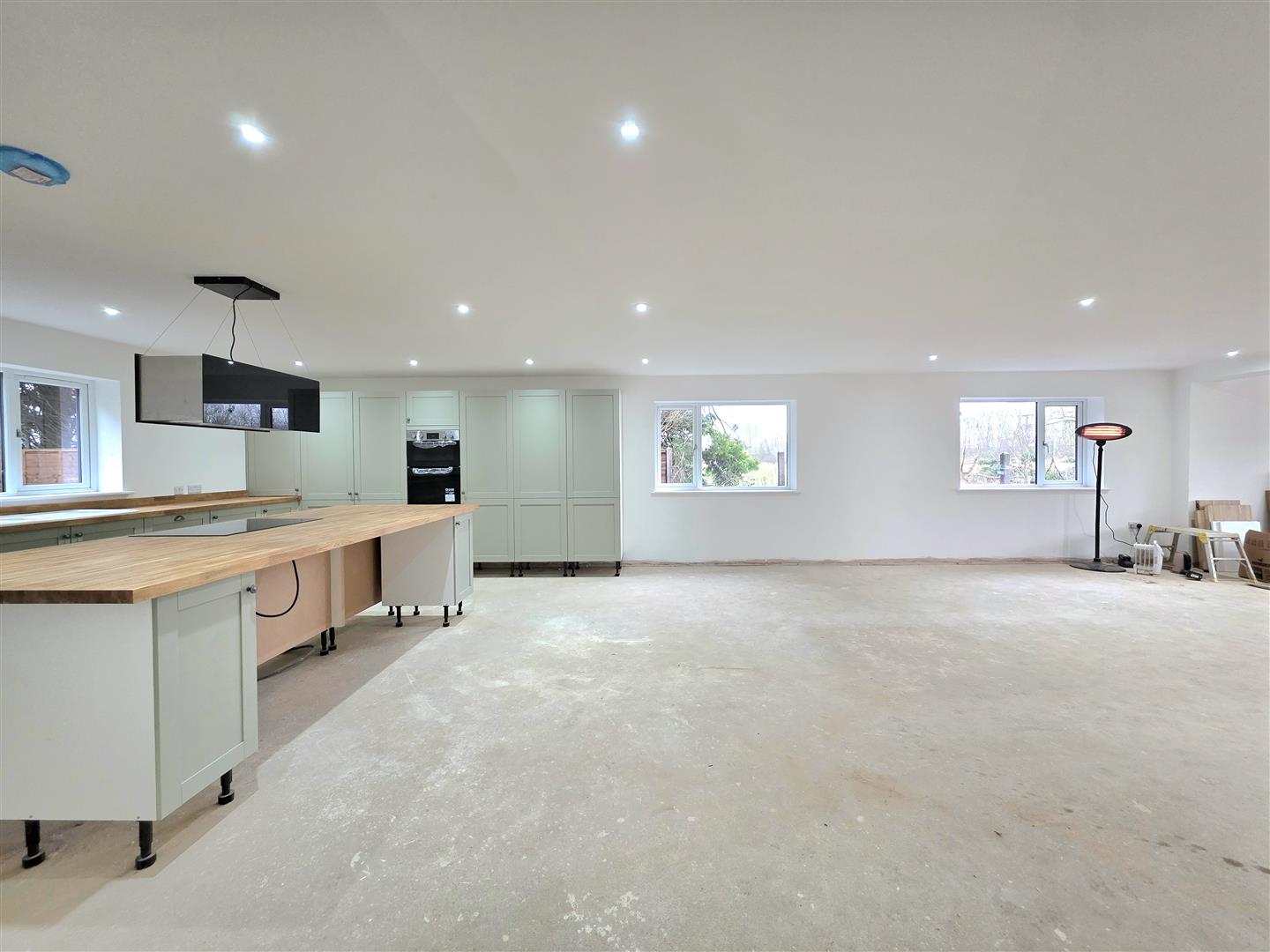 PVC double glazed windows to side and rear. Aluminium folding doors to rear opening onto patio.
