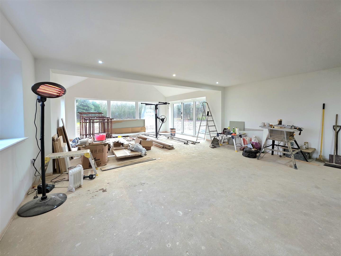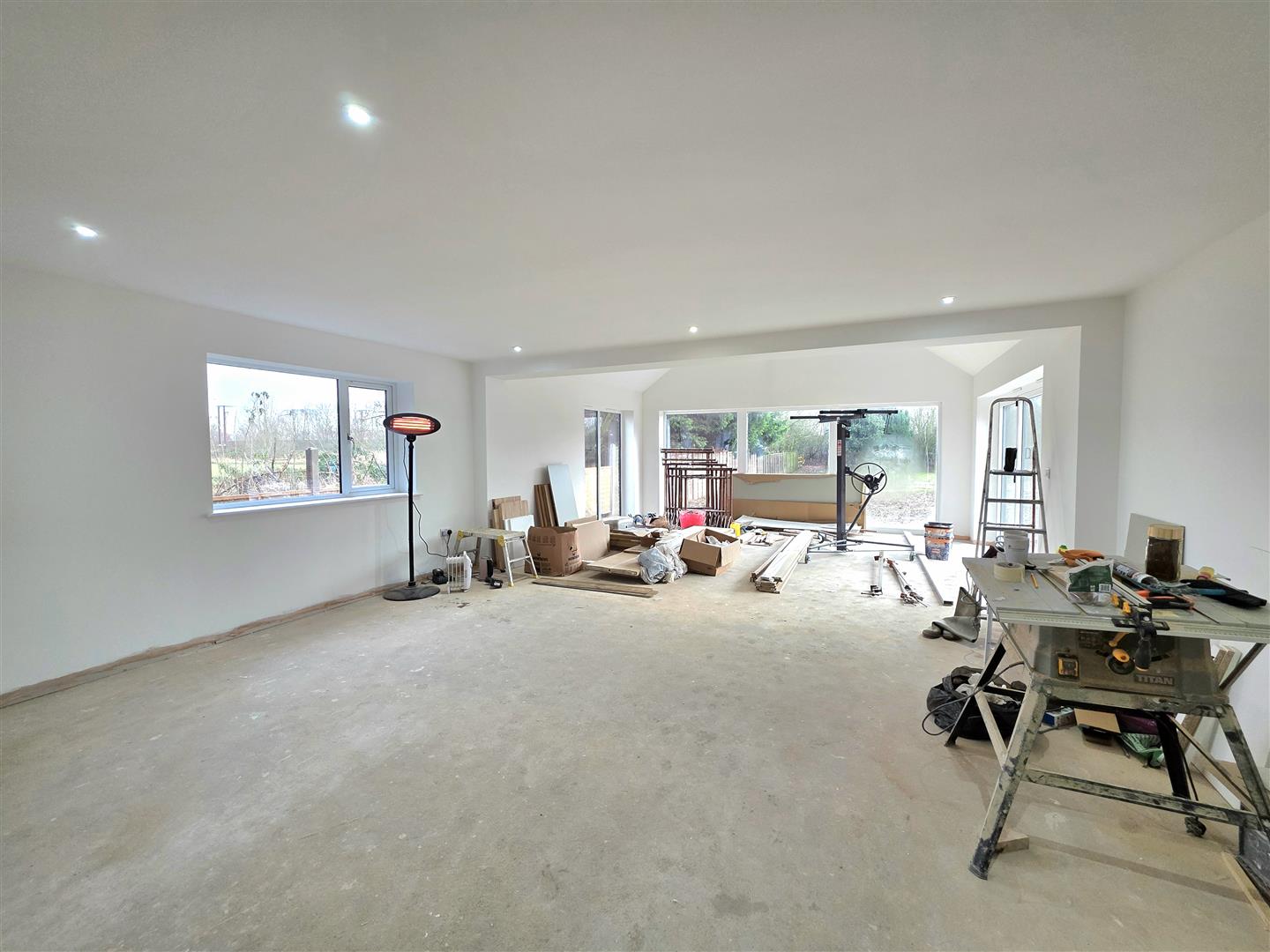 PVC double glazed windows to side and rear. Picture window looking onto the garden. Aluminium folding doors opening to patio area.