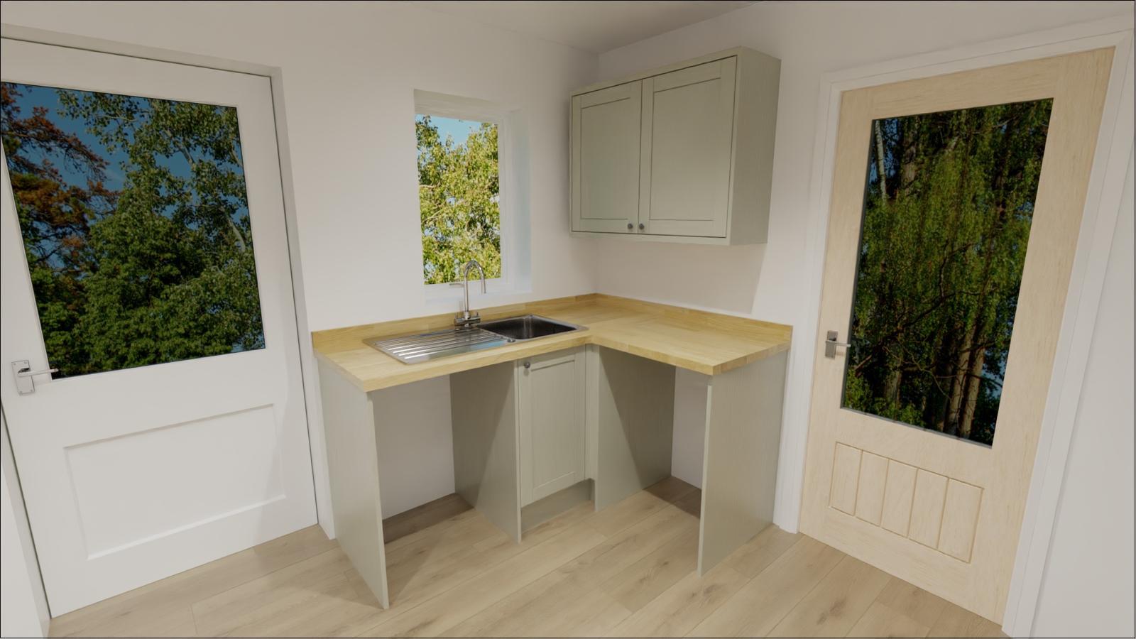 PVC double glazed windows and door to rear. Skimmed vaulted ceiling with recessed spot lighting. Vinyl flooring. Door to: