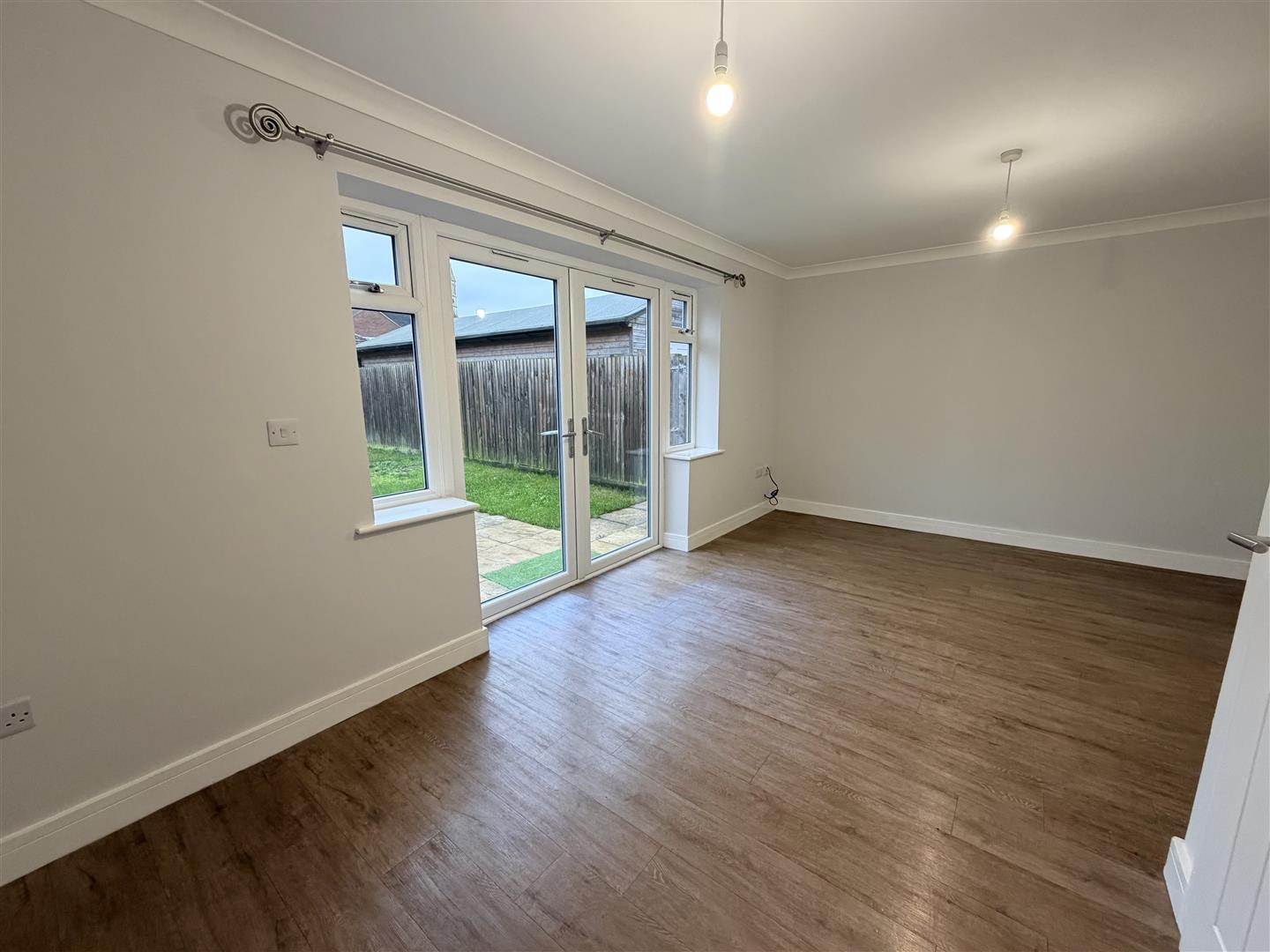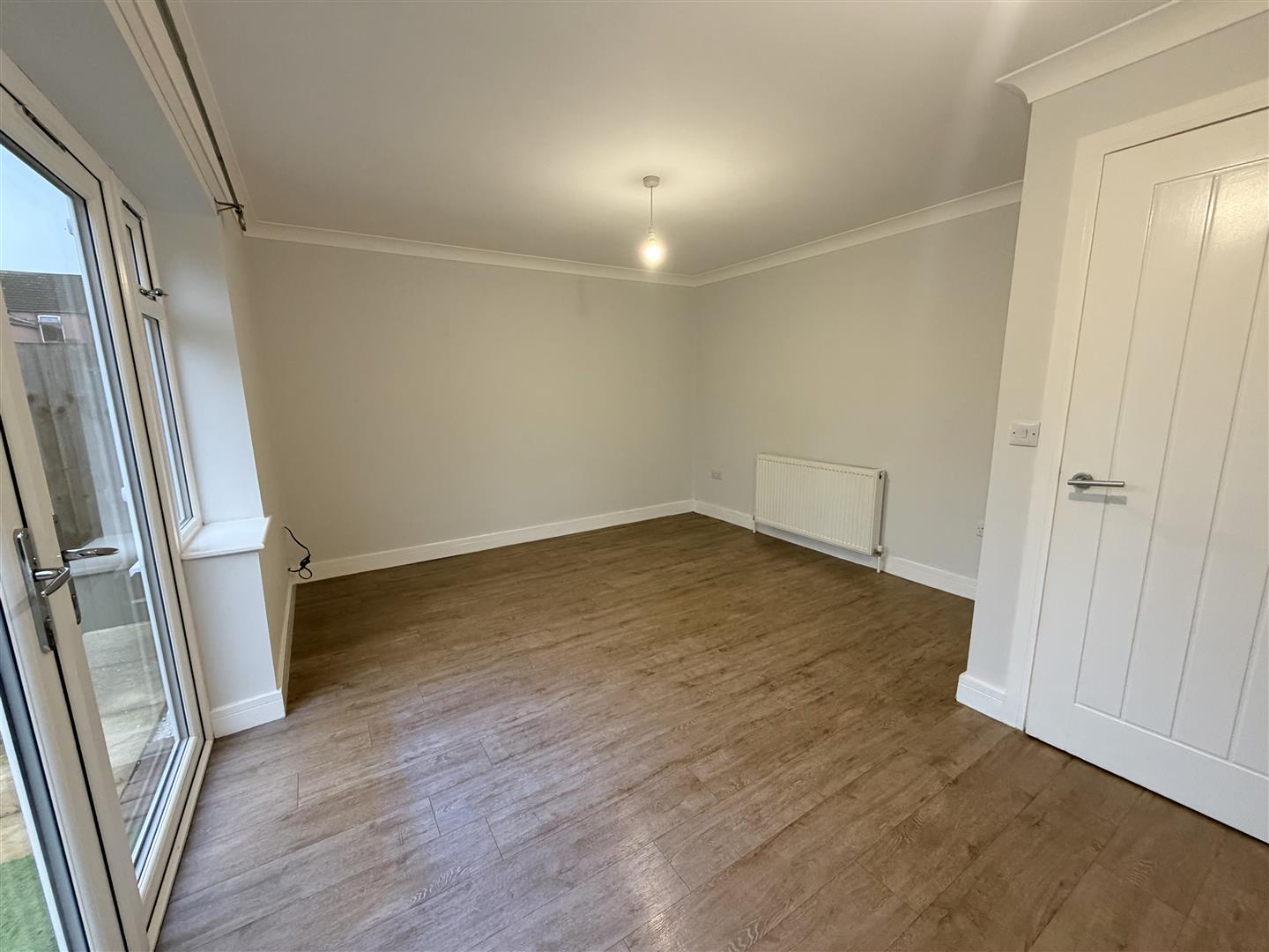 Spacious lounge featuring double French doors opening to the rear aspect. Finished with laminate flooring, TV aerial point, and radiator.